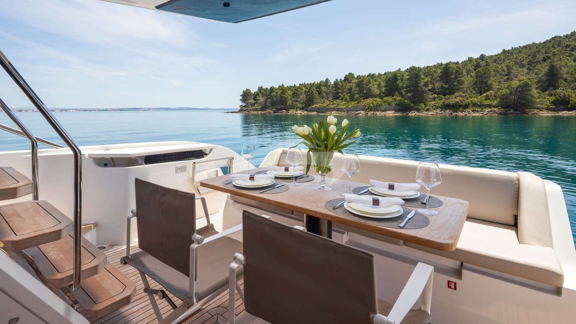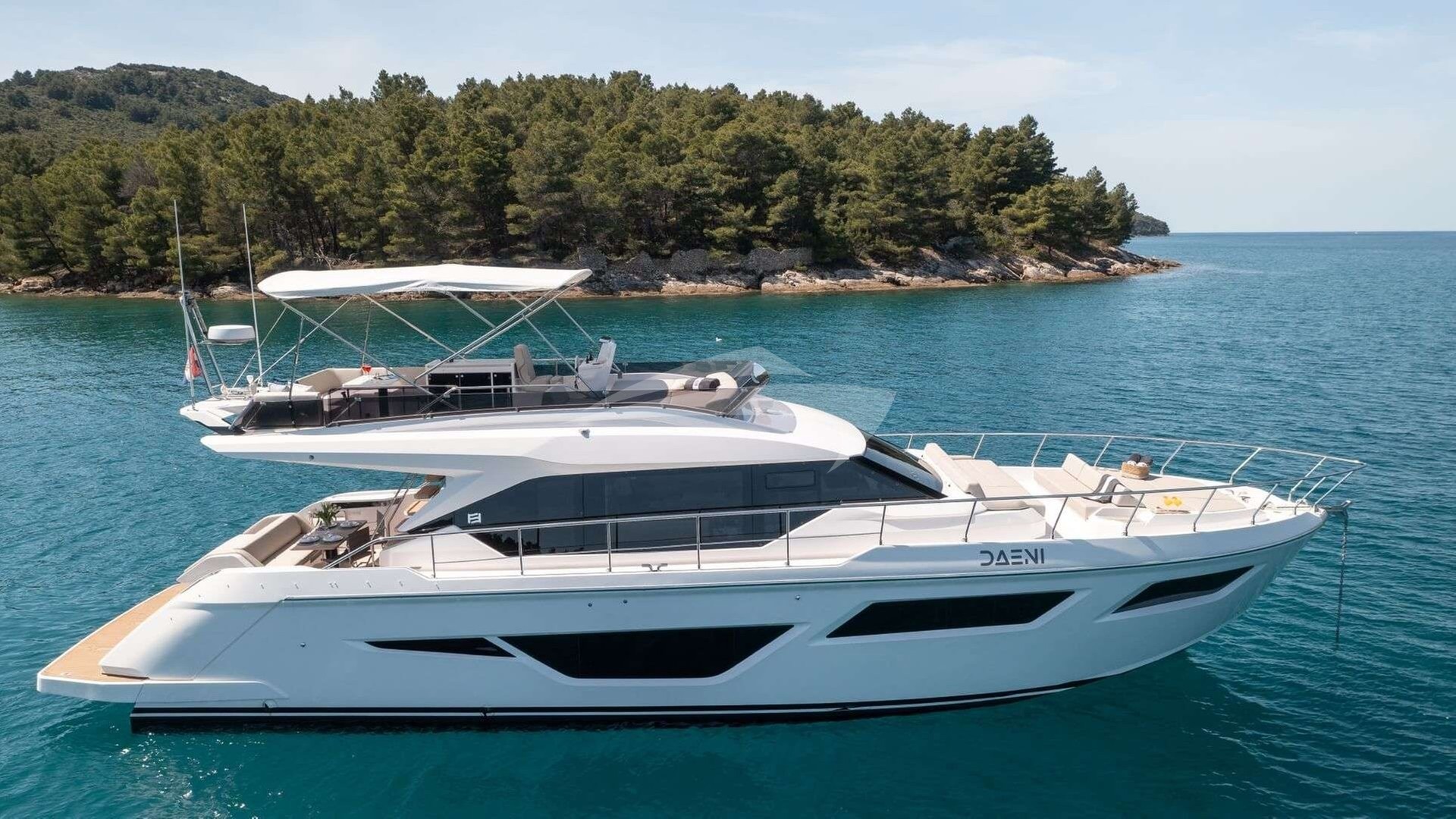 Daeni Yacht Charter is a 59' superyacht built by Ferretti in 2023. She sleeps 6 and holds 2 crew and is located in East Mediterranean and East Mediterranean. She can be booked for a private luxury charter at a rate of $26,938 per week. Please check with your Denison Charter Specialist for more info.