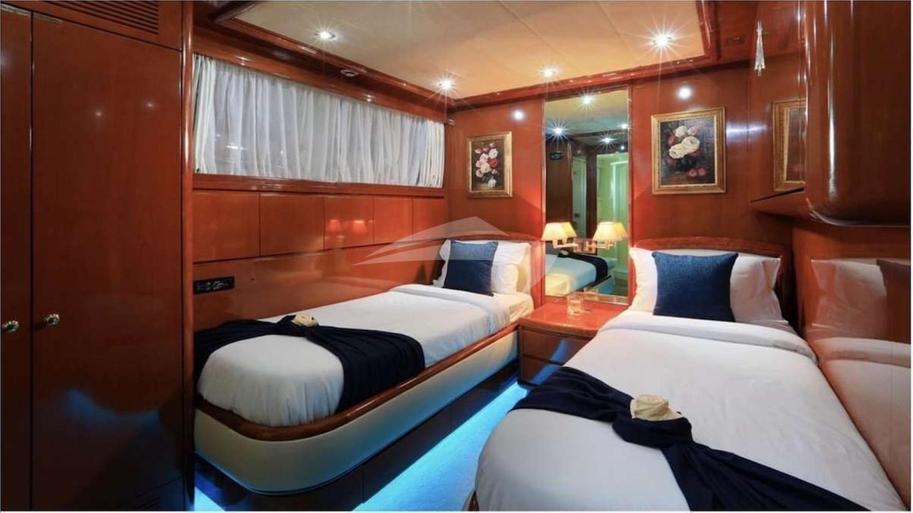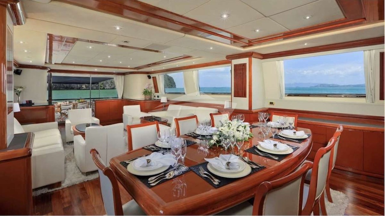 Demarest Yacht Charter is a 105' superyacht built by Falcon in 2002. She sleeps 10 and holds 6 crew and is located in South East Asia and South East Asia. She can be booked for a private luxury charter at a rate of $58,228 per week. Please check with your Denison Charter Specialist for more info.