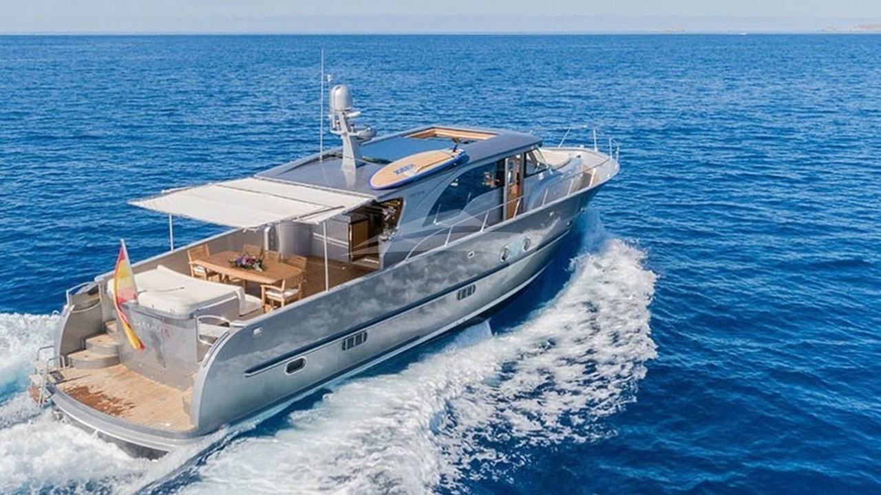 Dhamma Yacht Charter is a 66' superyacht built by Custom in 2011. She sleeps 8 and holds 2 crew and is located in West Mediterranean and West Mediterranean. She can be booked for a private luxury charter at a rate of $17,914 per week. Please check with your Denison Charter Specialist for more info.