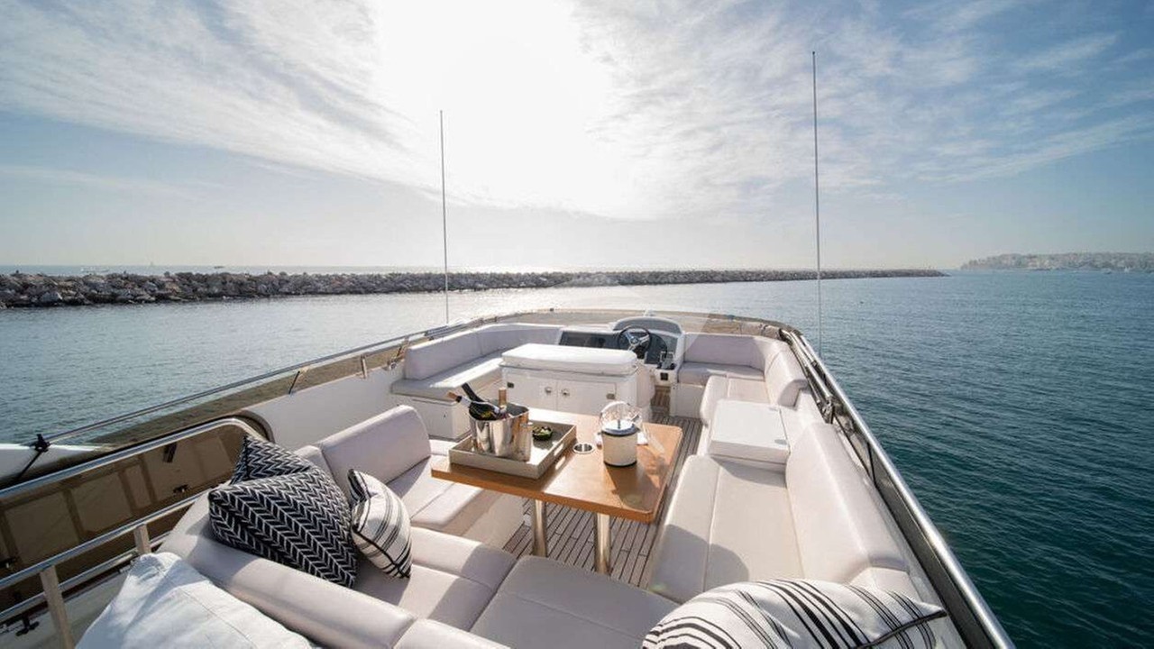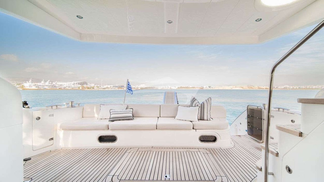 Dial Ii Yacht Charter is a 63' superyacht built by Princess in 2008. She sleeps 6 and holds 2 crew and is located in East Mediterranean and East Mediterranean. She can be booked for a private luxury charter at a rate of $24,428 per week. Please check with your Denison Charter Specialist for more info.