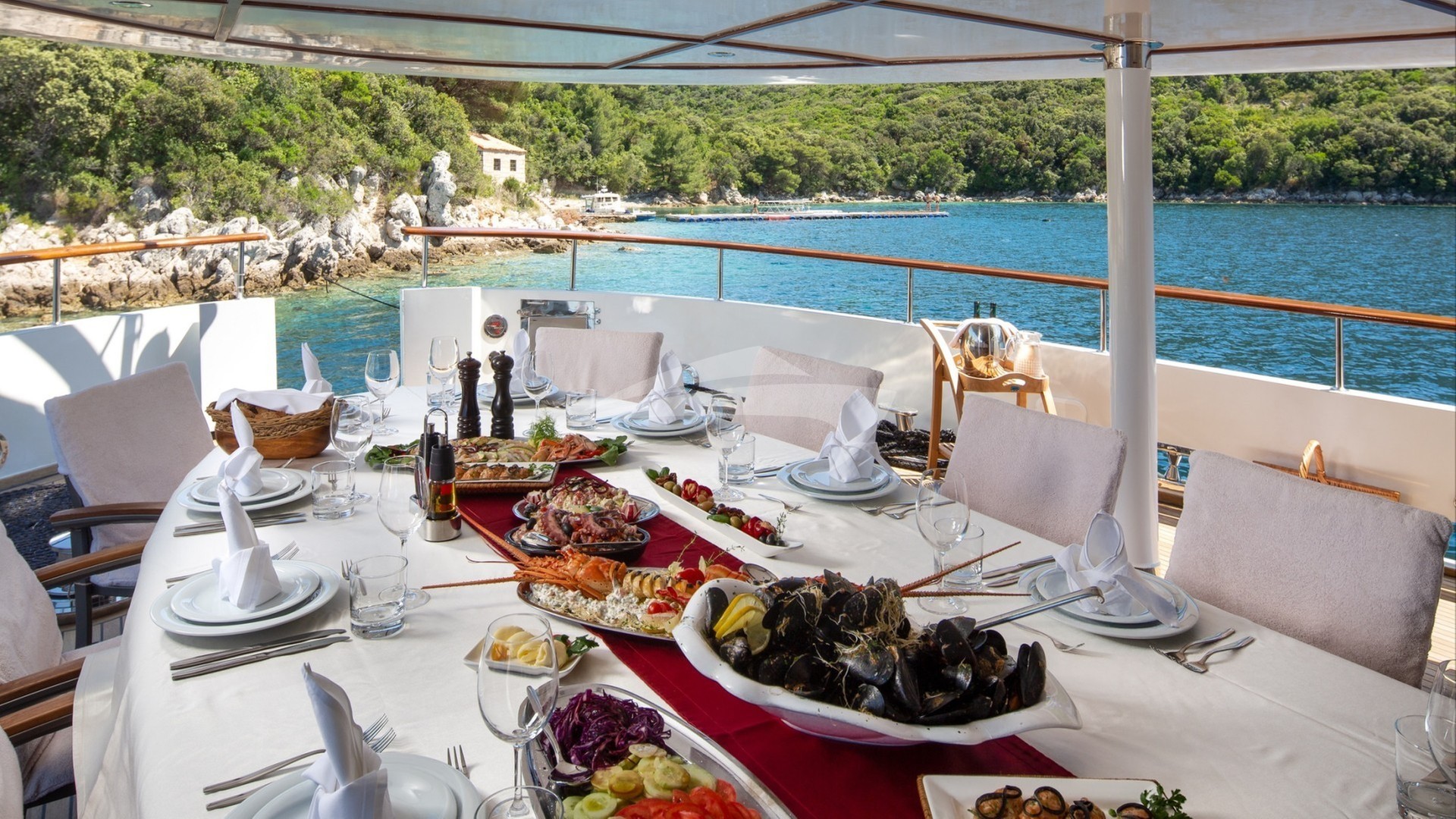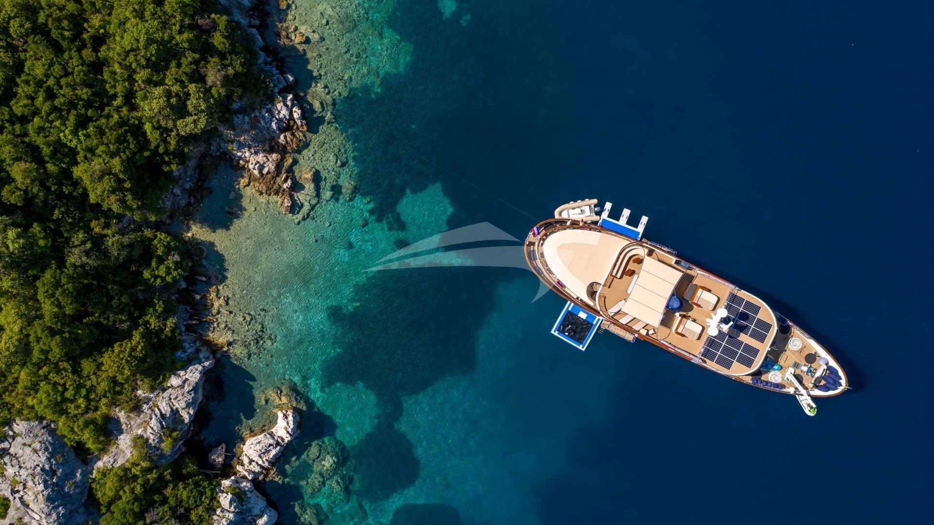 Inside, the yacht boasts a sophisticated interior with air conditioning throughout, providing a cool retreat from the Mediterranean sun. Stay connected with onboard Wi-Fi, perfect for sharing your unforgettable moments or keeping in touch with loved ones back home.