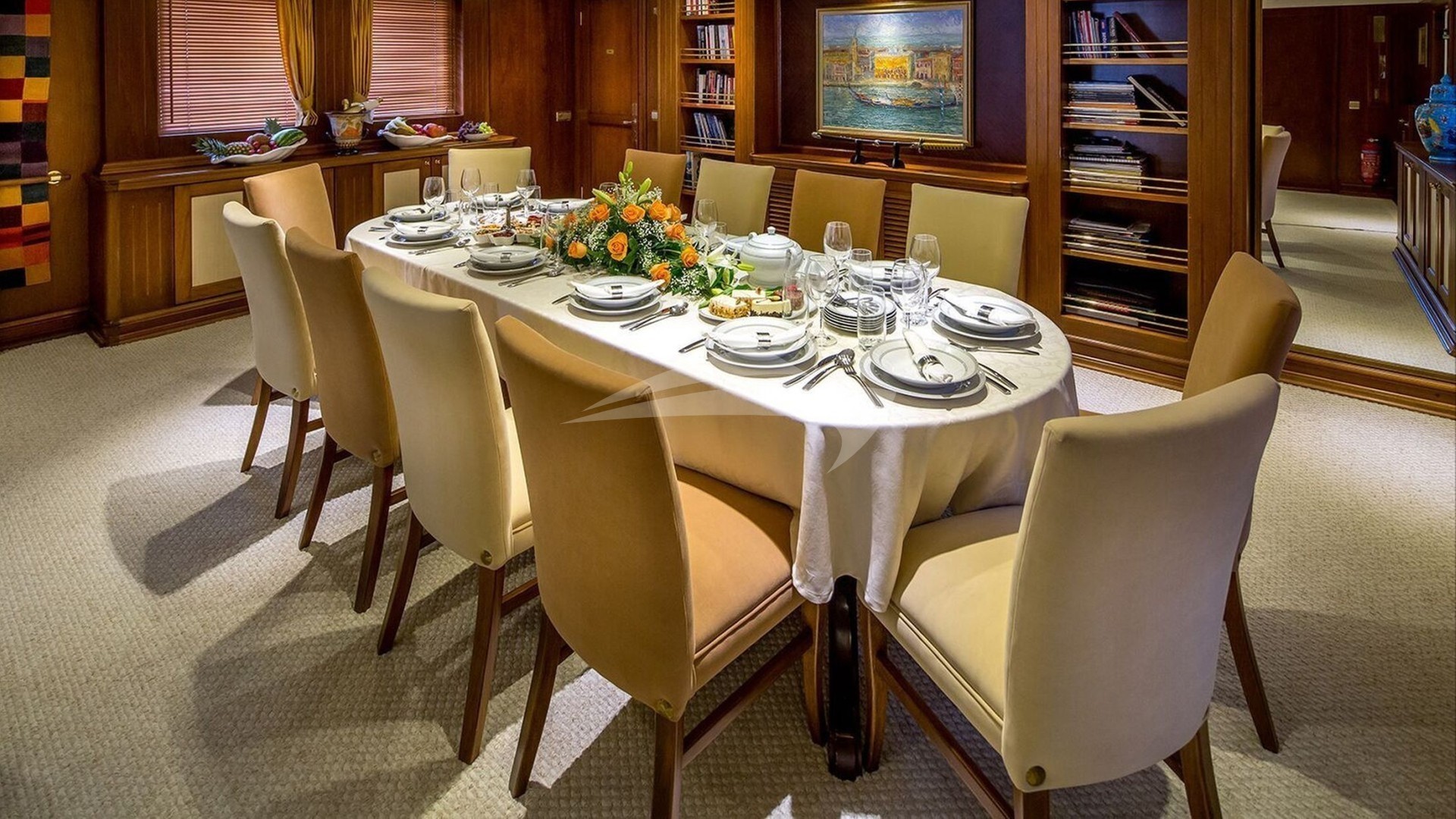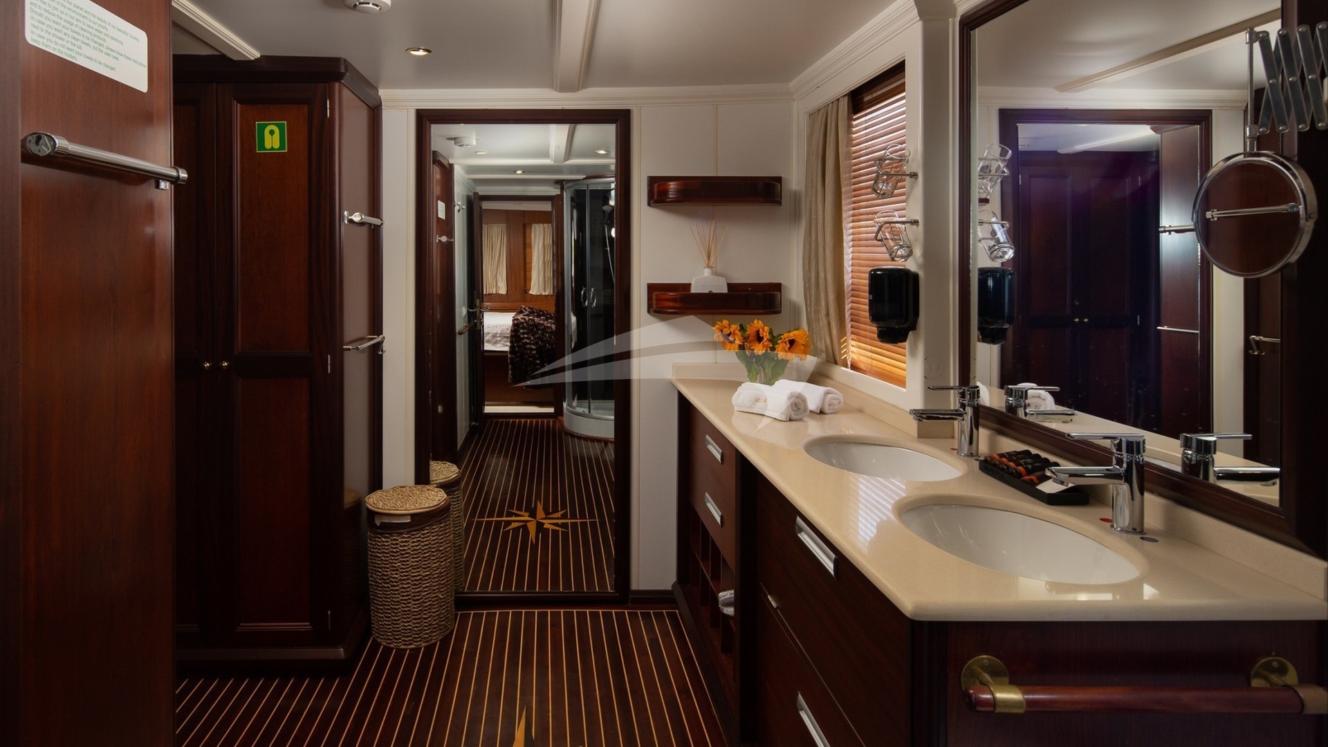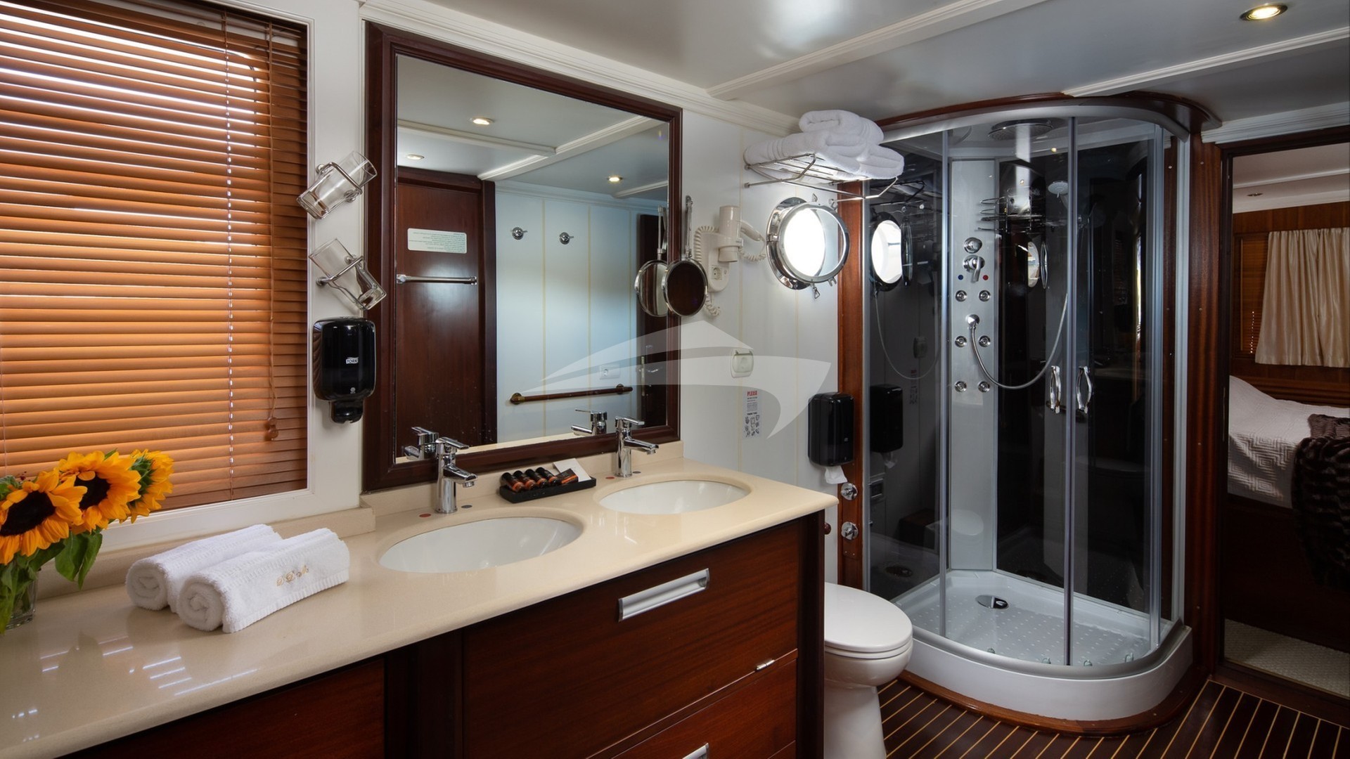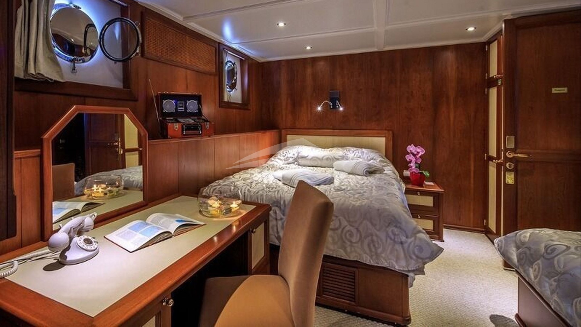 DONNA DEL MARE accommodates up to 16 guests in 7 lavishly appointed suites, making her the perfect choice for large families or groups of friends seeking an exclusive getaway. The master suite boasts a king-size bed and en-suite facilities, while the remaining cabins offer a mix of king and queen-size beds, ensuring comfort for all guests.