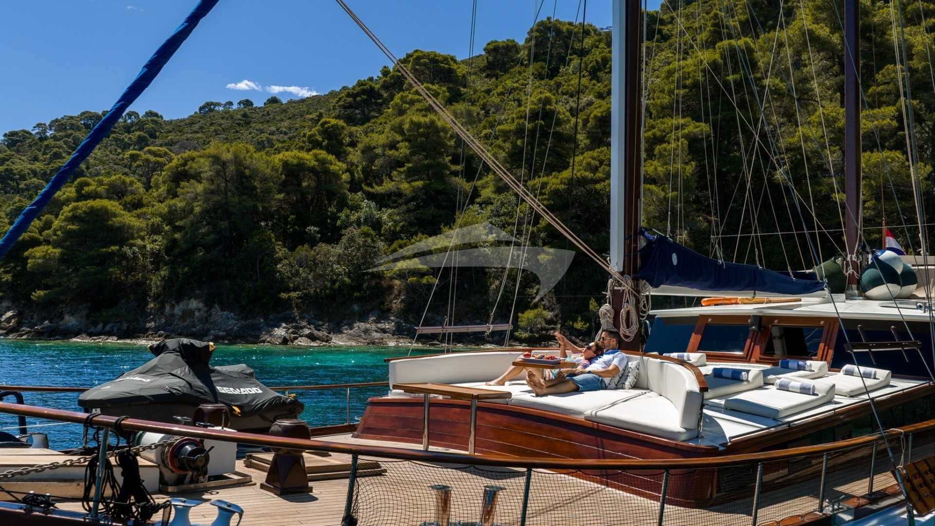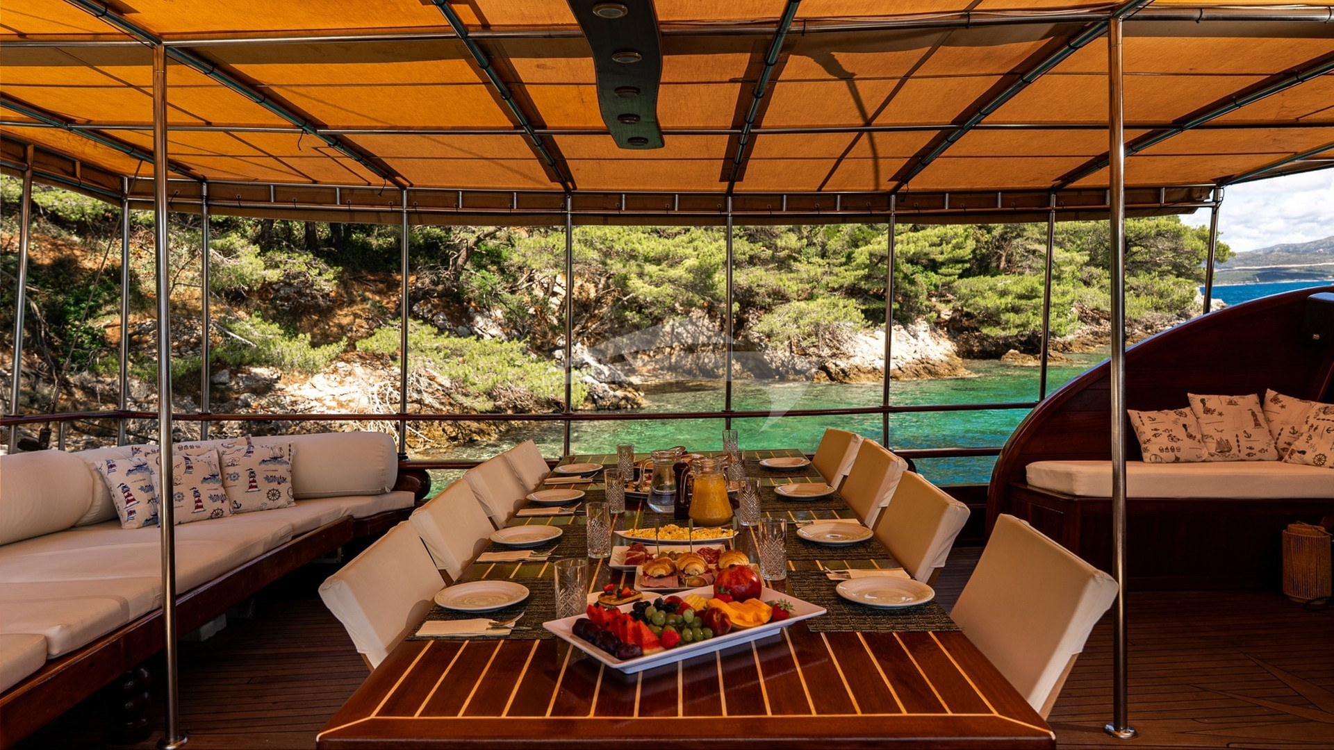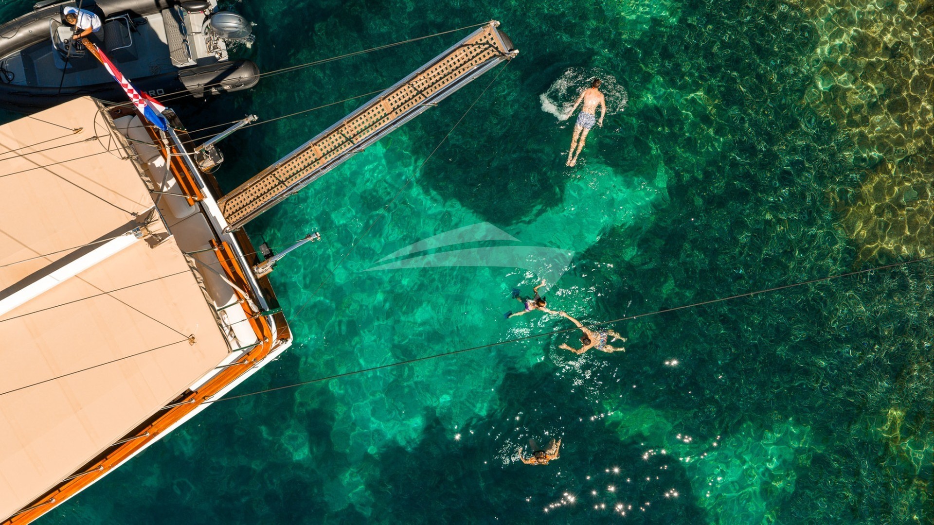 · ALL-INCLUSIVE PREMIUM ALCOHOLIC DRINKS: 350 €/person/week (tea, coffee, fresh orange juice, all kinds of 100% fruit juices, carbonated juices, water, mineral water, Jameson, Jack Daniels, Absolut vodka, Hendricks Gin, Havana rum, Martell cognac, Don Julio tequila, Monin syrups, High-quality Croatian wines - Grk, Plavac Mali, Zinfandel, Cabernet Sauvignon, Posip, Zlatarica, Sparkling wines)