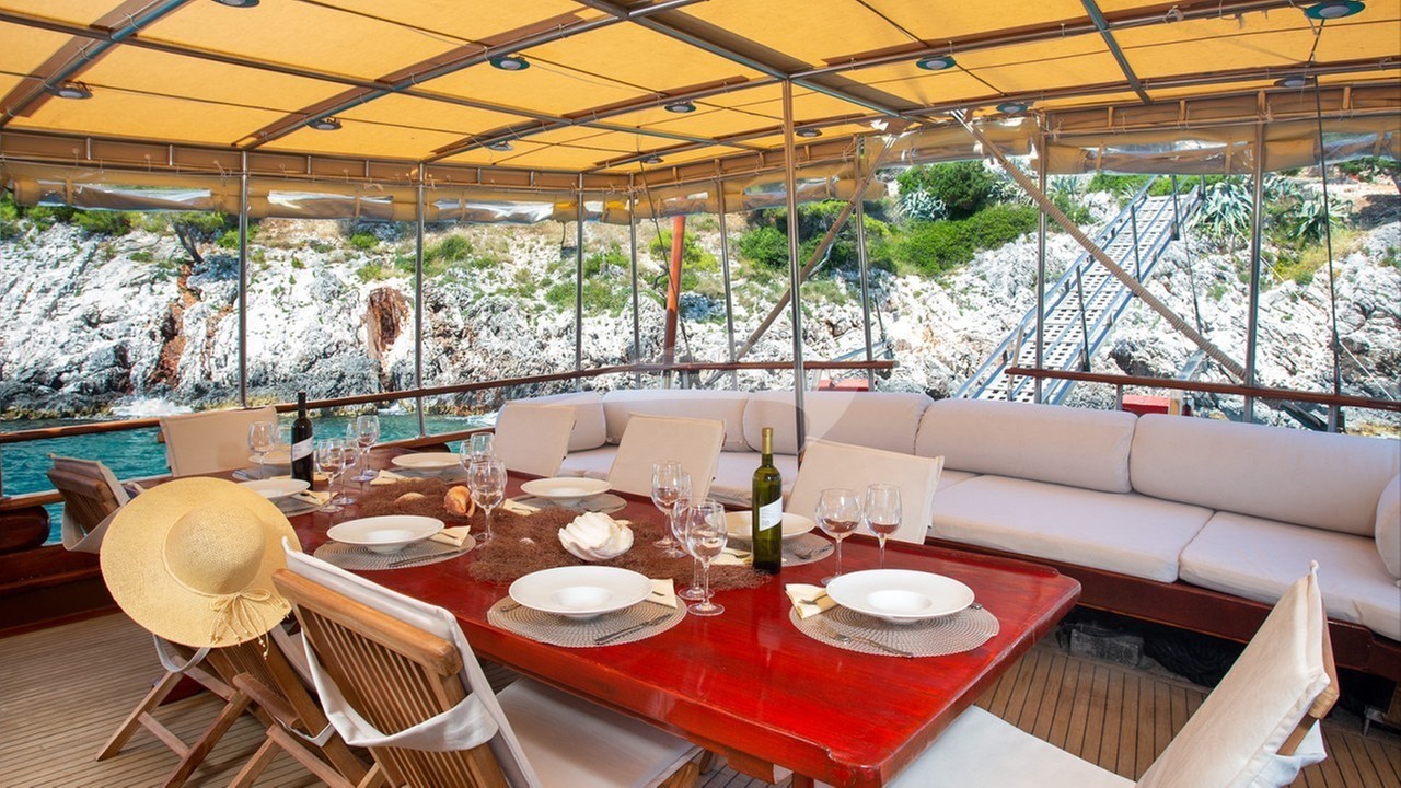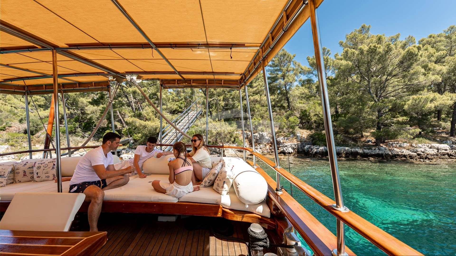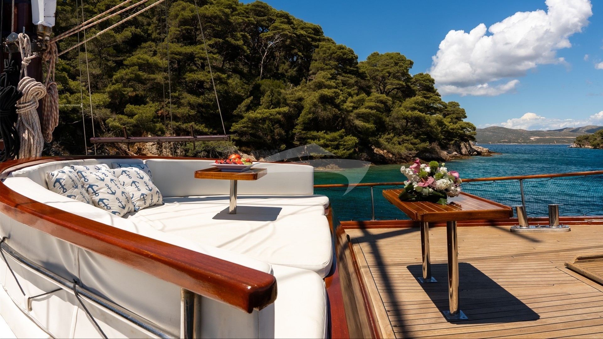 · ALL-INCLUSIVE PREMIUM ALCOHOLIC DRINKS: 350 €/person/week (tea, coffee, fresh orange juice, all kinds of 100% fruit juices, carbonated juices, water, mineral water, Jameson, Jack Daniels, Absolut vodka, Hendricks Gin, Havana rum, Martell cognac, Don Julio tequila, Monin syrups, High-quality Croatian wines - Grk, Plavac Mali, Zinfandel, Cabernet Sauvignon, Posip, Zlatarica, Sparkling wines)