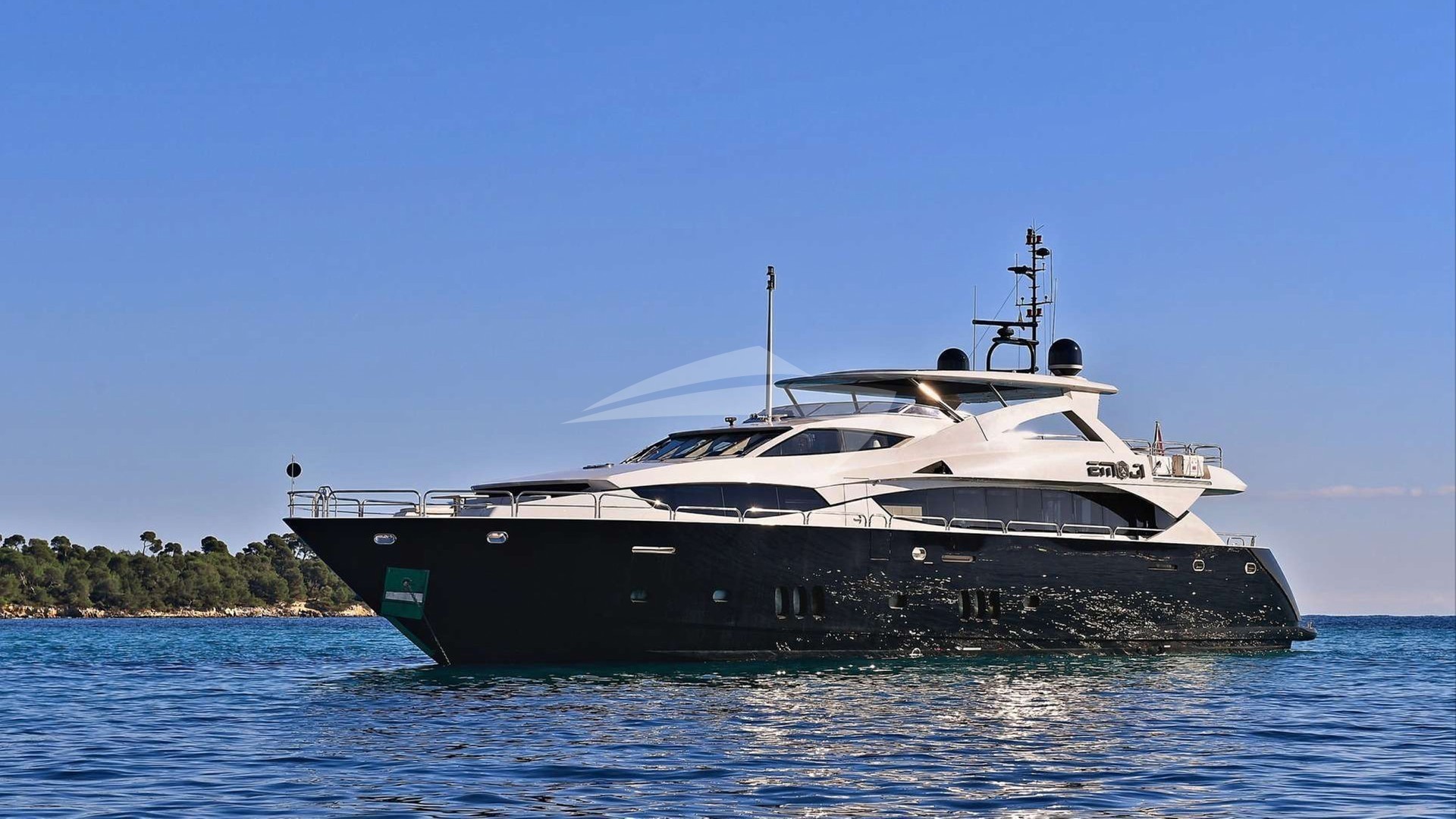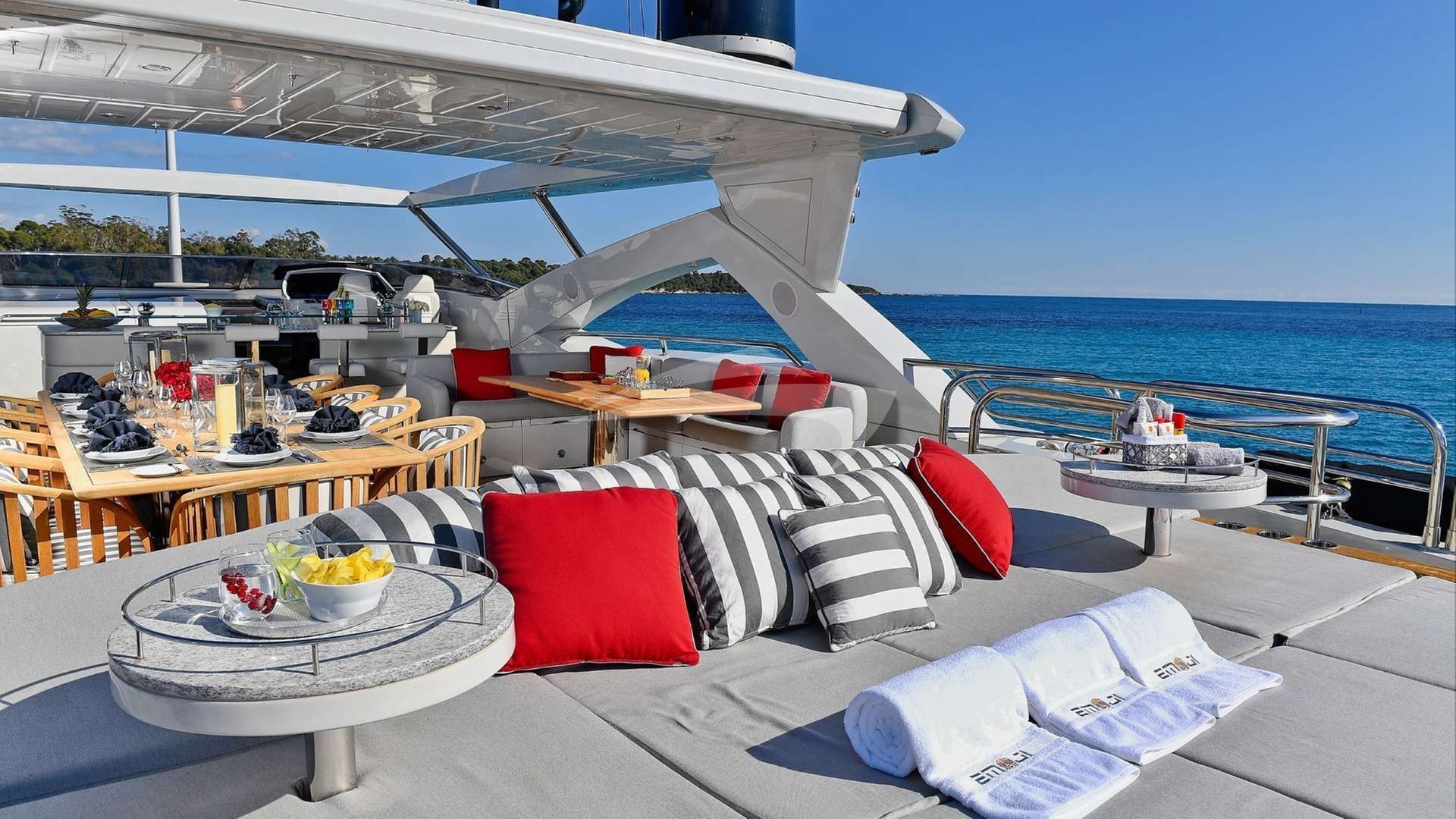 Emoji Yacht Charter is a 111' superyacht built by Sunseeker in 2010. She sleeps 10 and holds 5 crew and is located in East Mediterranean, West Mediterranean and East Mediterranean, West Mediterranean. She can be booked for a private luxury charter at a rate of $87,368 per week. Please check with your Denison Charter Specialist for more info.