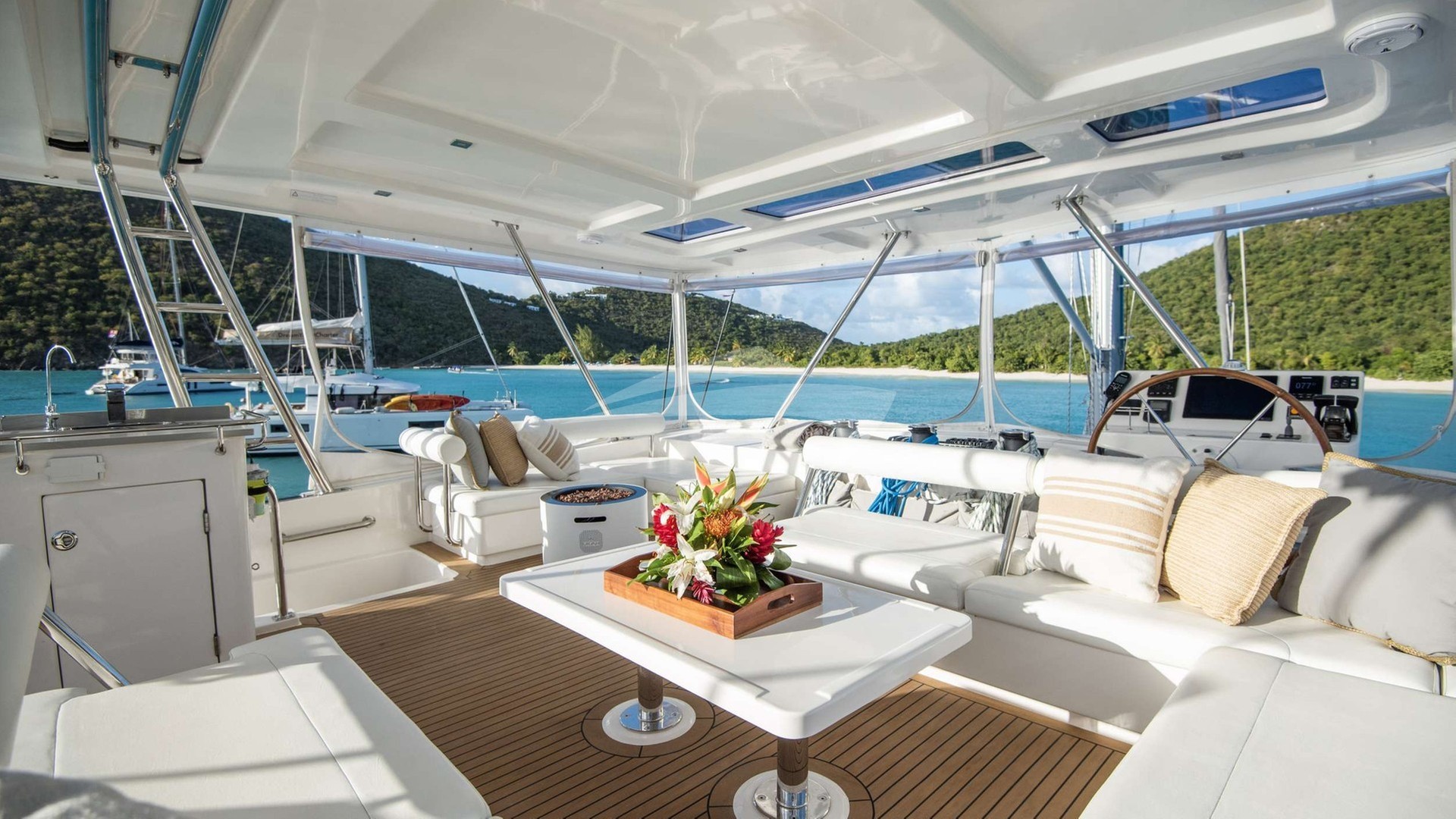 Emysa Yacht Charter is a 58' superyacht built by Leopard in 2019. She sleeps 6 and holds 2 crew and is located in Caribbean and Caribbean. She can be booked for a private luxury charter at a rate of $40,200 per week. Please check with your Denison Charter Specialist for more info.