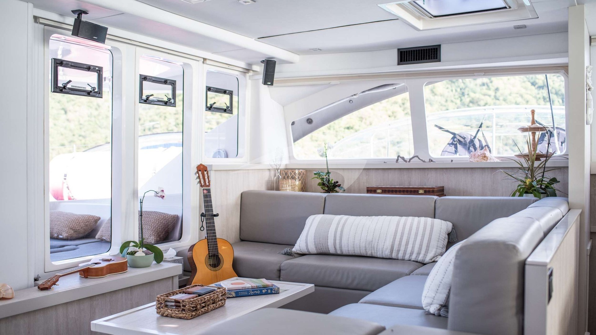 For evenings aboard, EMYSA delights with a Bluetooth sound system, salon television, board and card games, or the strum of a guitar, ukulele, or keyboard.