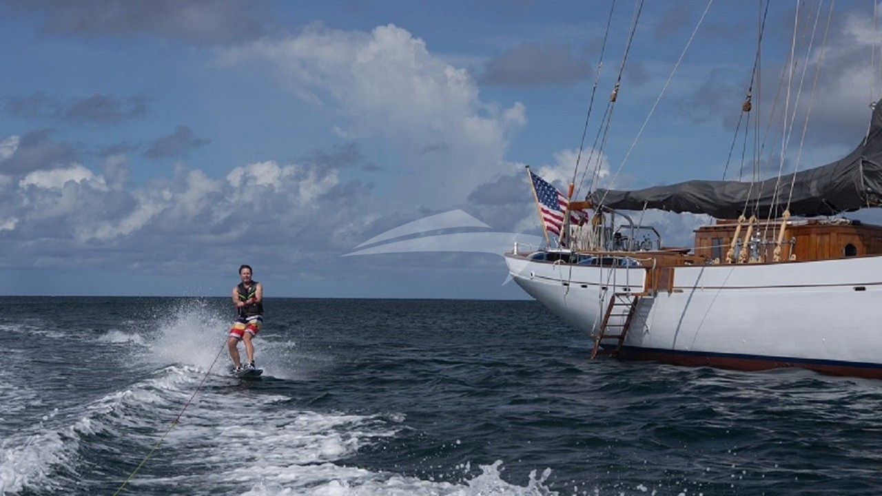 When money is no object, the EROS crew can arrange for you to have the ultimate toy aboard - one of Graham Hawke's deep flight submersibles along with a qualified instructor. The professional crew of five includes a very experienced Captain and gourmet chef. Guests can swing in a hammock sipping a tropical drink, swim to the beach, or take the helm and help hoist the sails if you wish.