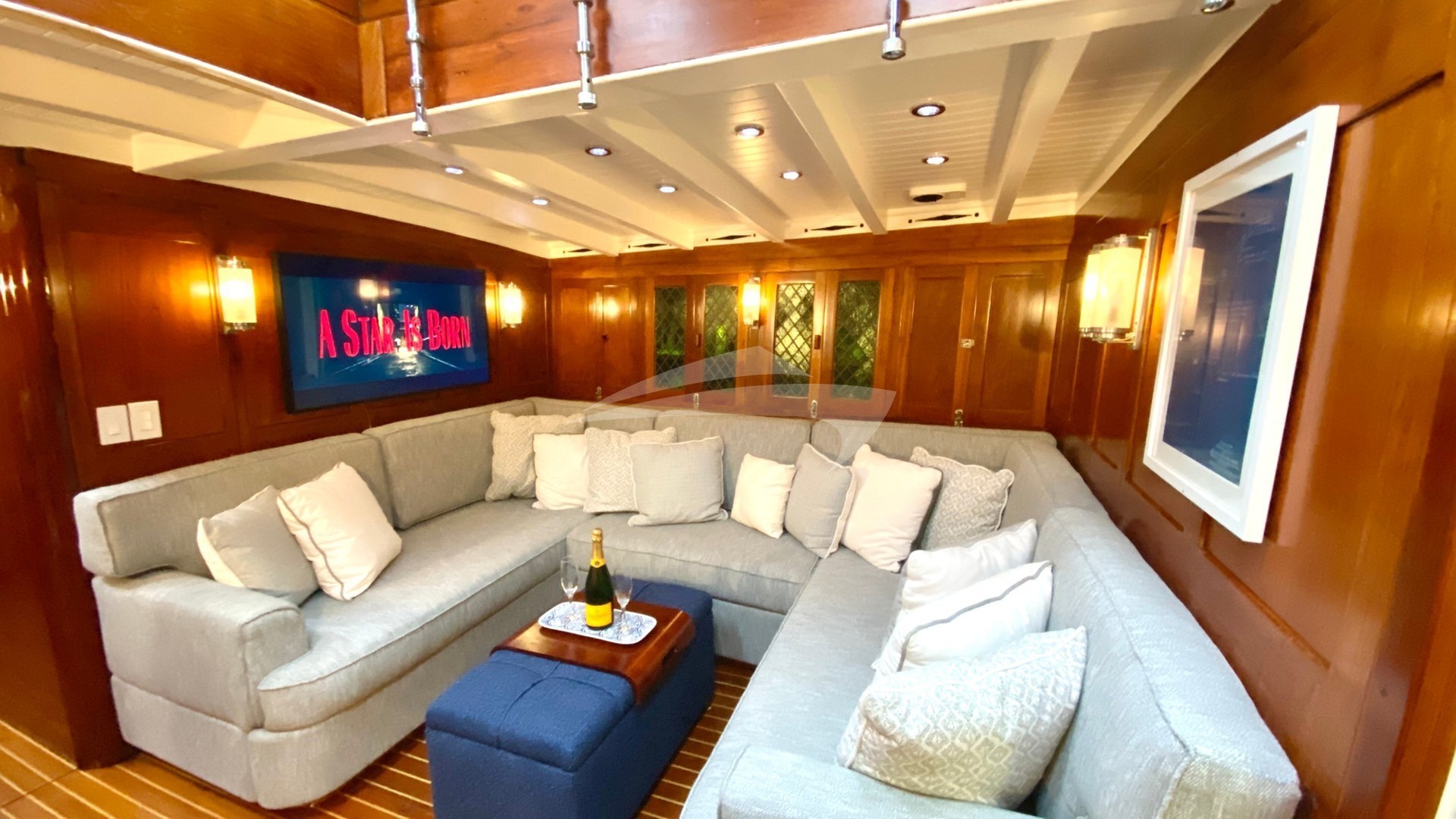 'EROS' comfortably accommodates up to eight guests in four double cabins. The usual toys are aboard for amusing oneself when at anchor: small boats suitable for sailing, paddling or skiing, snorkeling gear and dive boat, plasma TV, piano, hammocks - the list goes on!