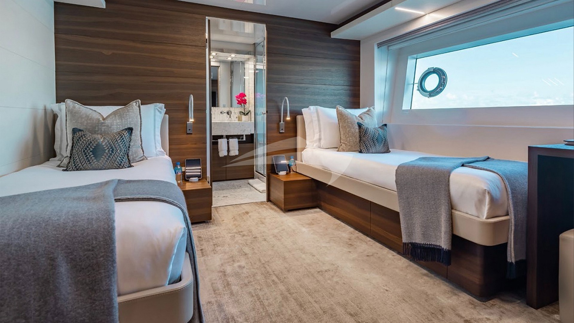 Welcome aboard ROMEO FOXTROT, a stunning 2024 Hargrave 118’ yacht where luxury meets adventure. With five lavish staterooms (all featuring king beds) – including a full-beam on-deck master suite – guests will be sleeping in ultimate comfort and style. The sleek, modern interior blends soft grey and white tones with rich mahogany floors, creating an effortlessly elegant vibe.