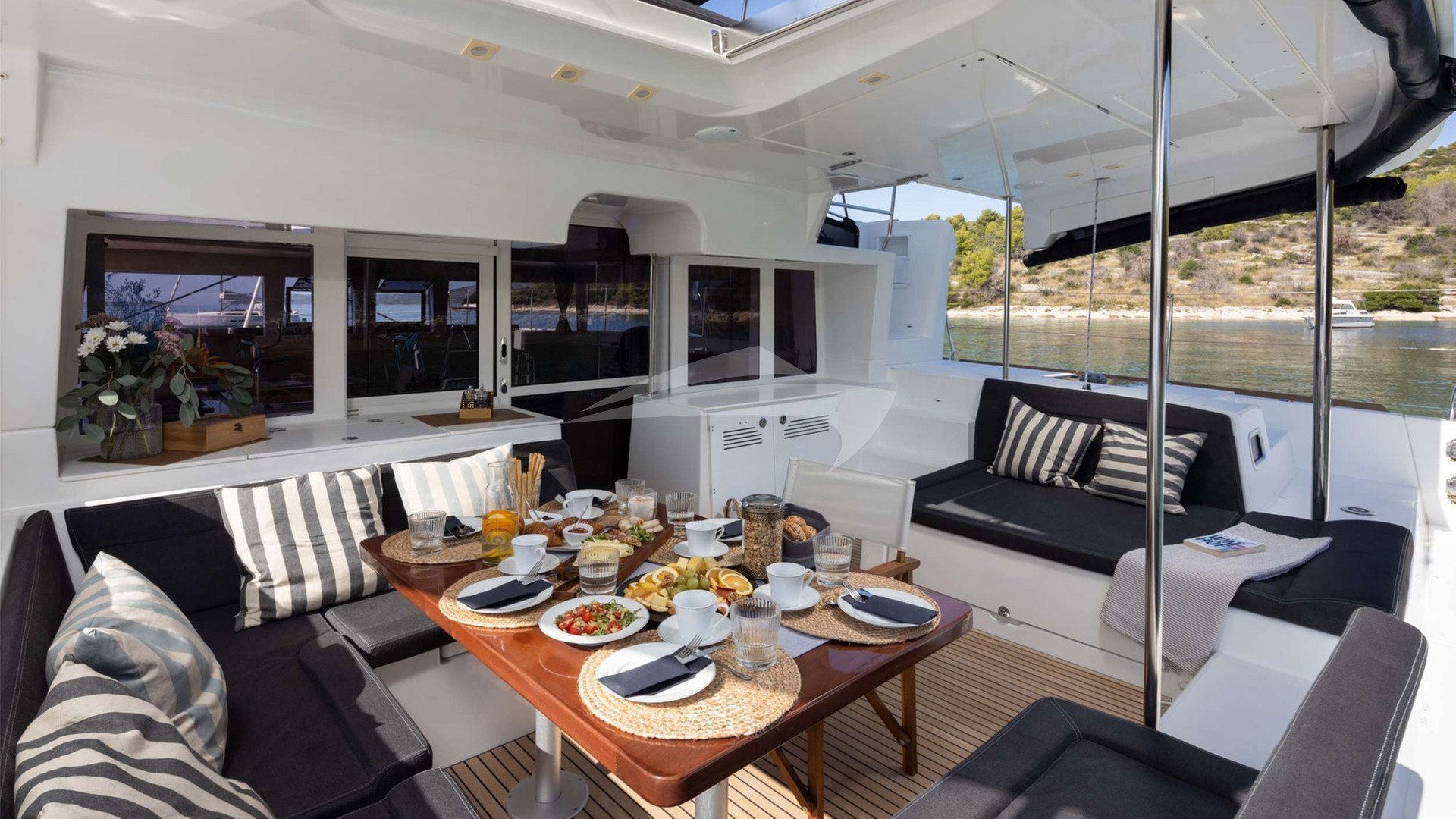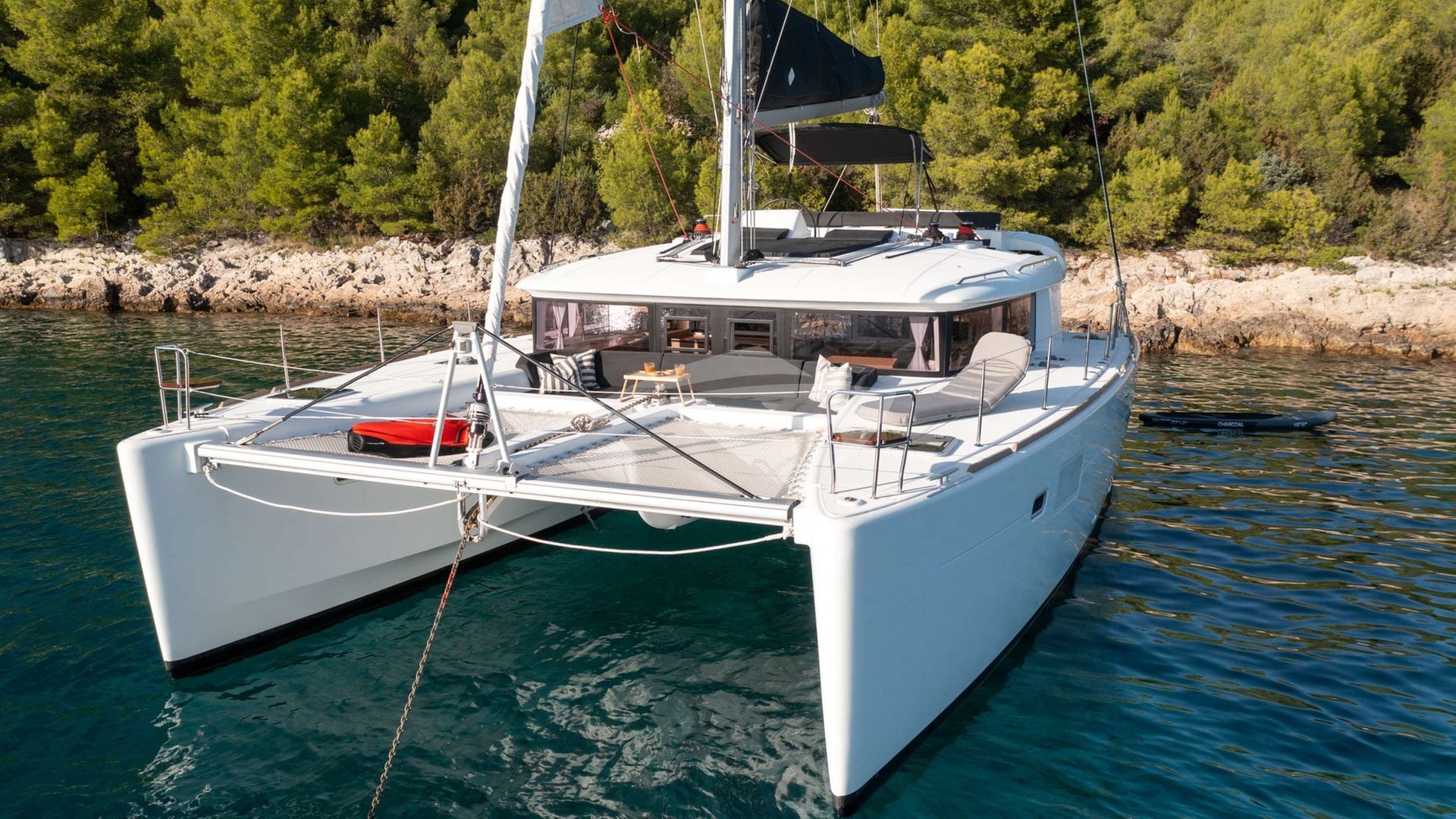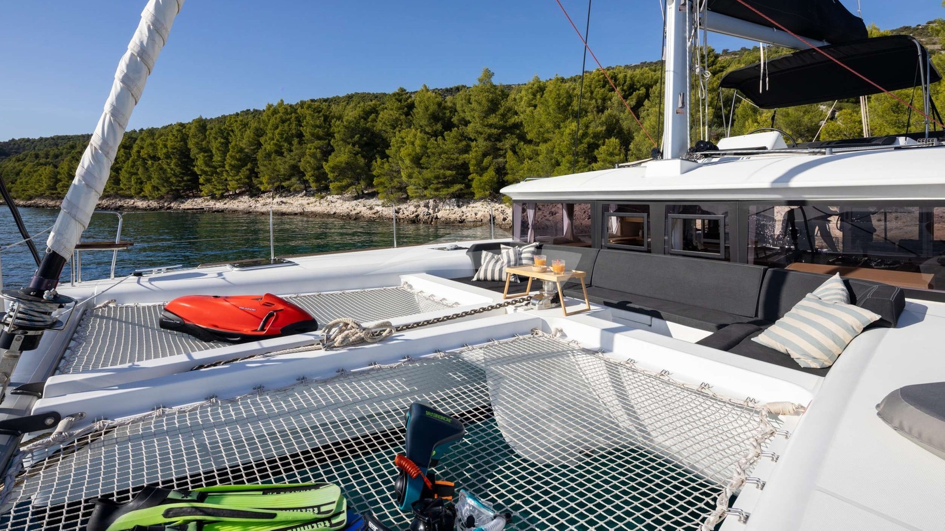 Falco Yacht Charter is a 44' superyacht built by Lagoon in 2017. She sleeps 6 and holds 2 crew and is located in East Mediterranean and East Mediterranean. She can be booked for a private luxury charter at a rate of $12,368 per week. Please check with your Denison Charter Specialist for more info.