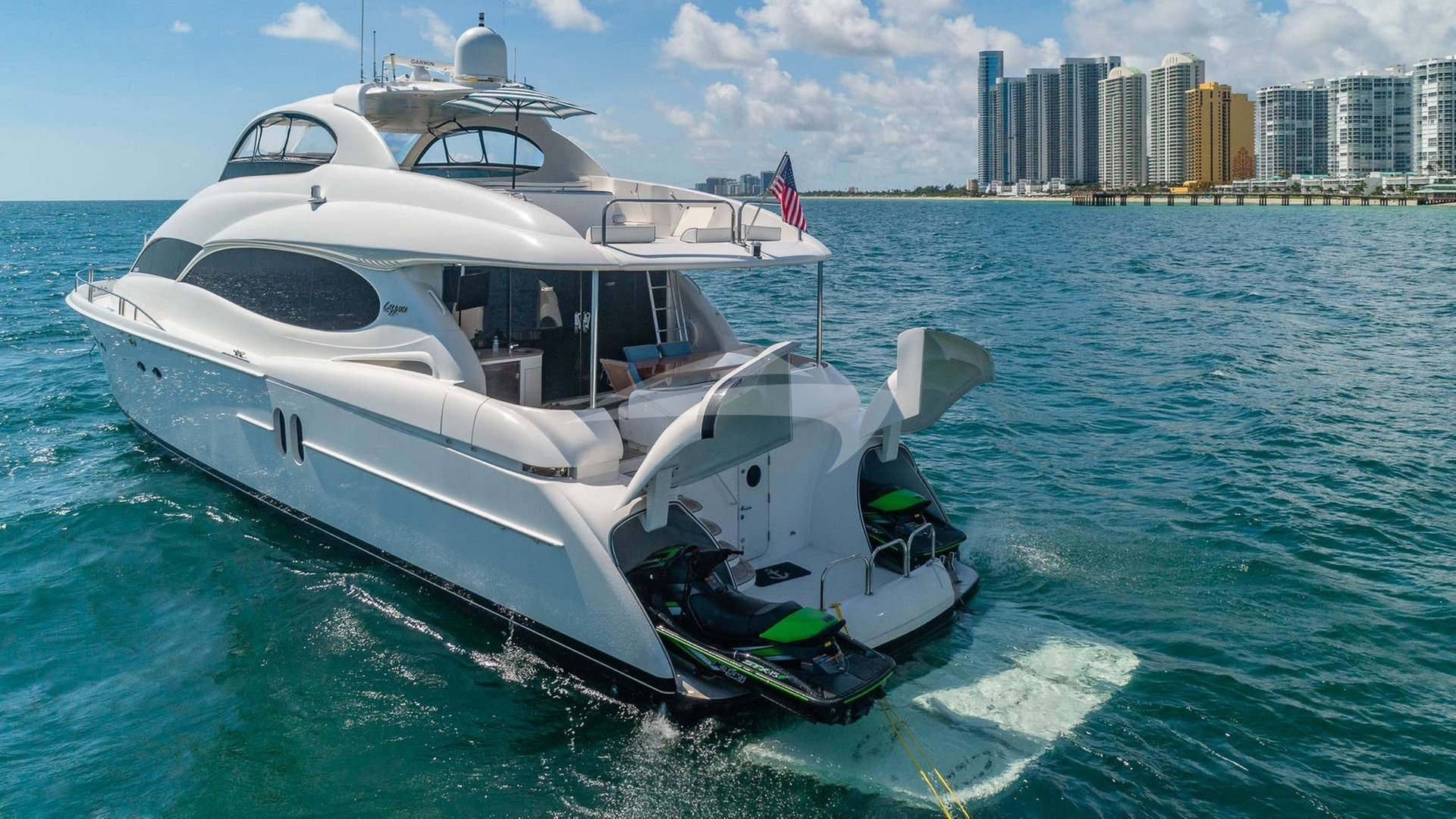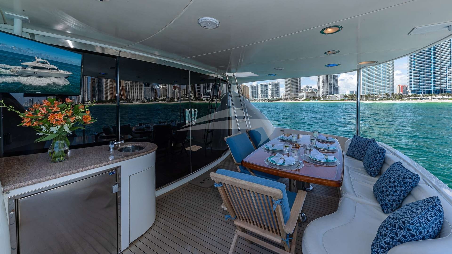 Finally-aphrodite Yacht Charter is a 84' superyacht built by Lazzara in 2004. She sleeps 8 and holds 3 crew and is located in Caribbean, East Coast United States and Caribbean, East Coast United States. She can be booked for a private luxury charter at a rate of $40,000 per week. Please check with your Denison Charter Specialist for more info.