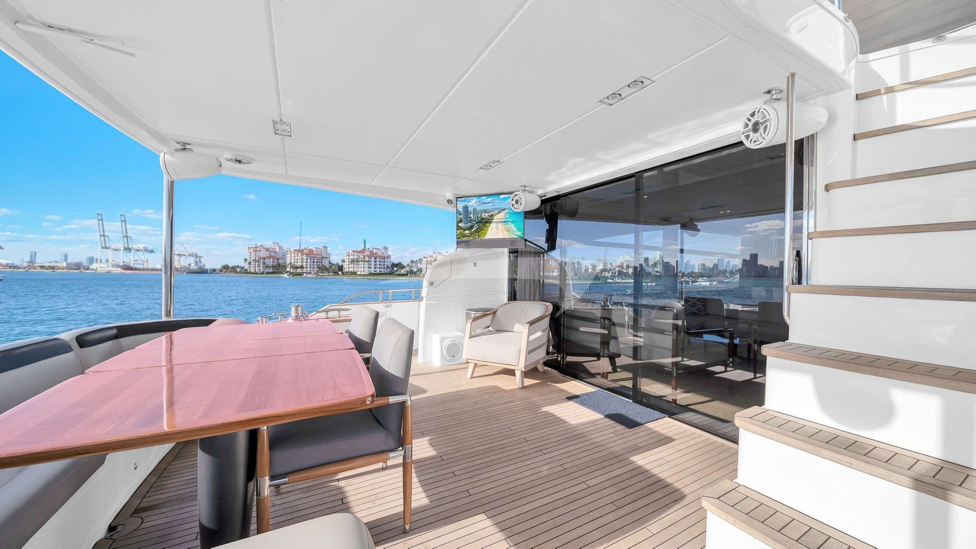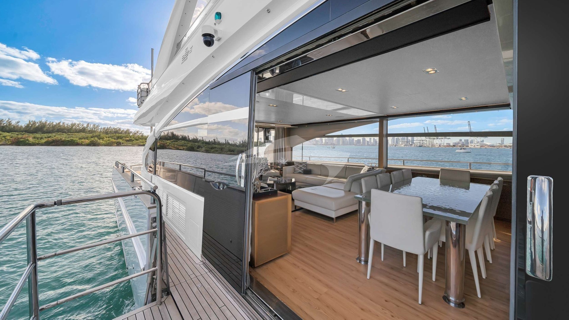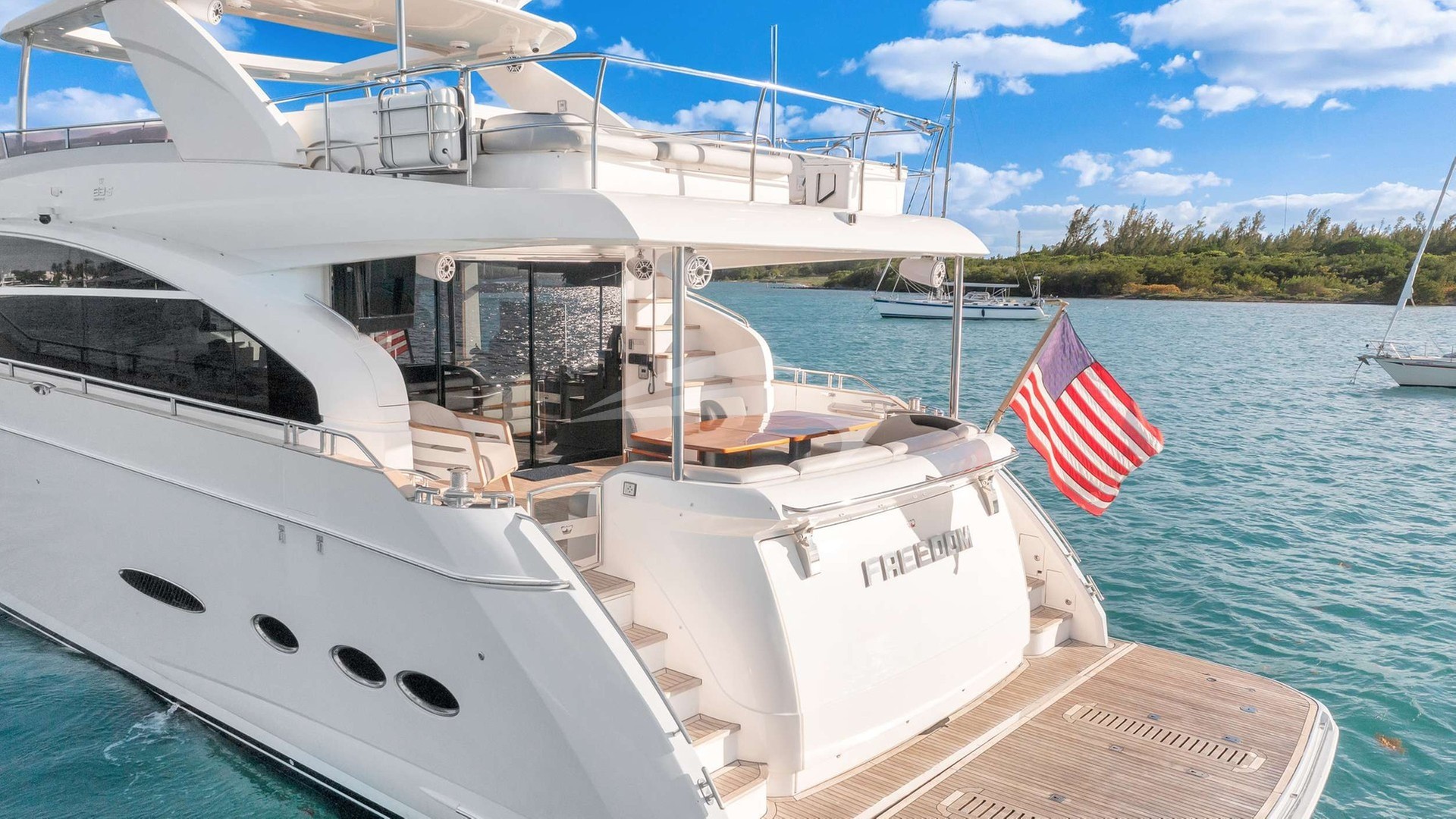 Freedom Yacht Charter is a 87' superyacht built by Princess in 2015. She sleeps 8 and holds 2 crew and is located in East Coast United States and East Coast United States. She can be booked for a private luxury charter at a rate of $69,000 per week. Please check with your Denison Charter Specialist for more info.