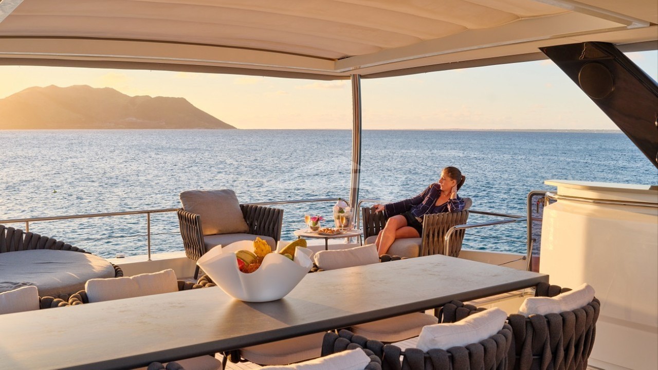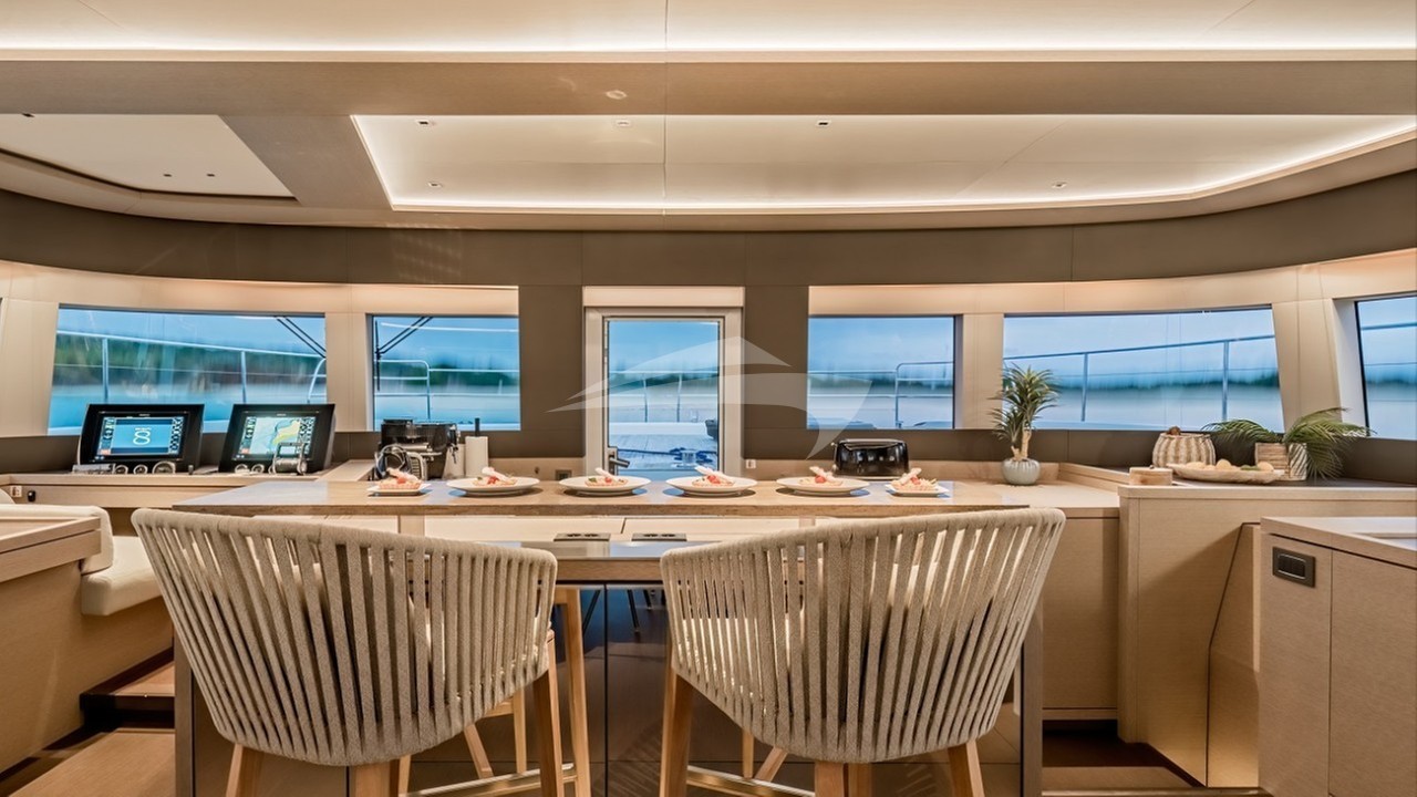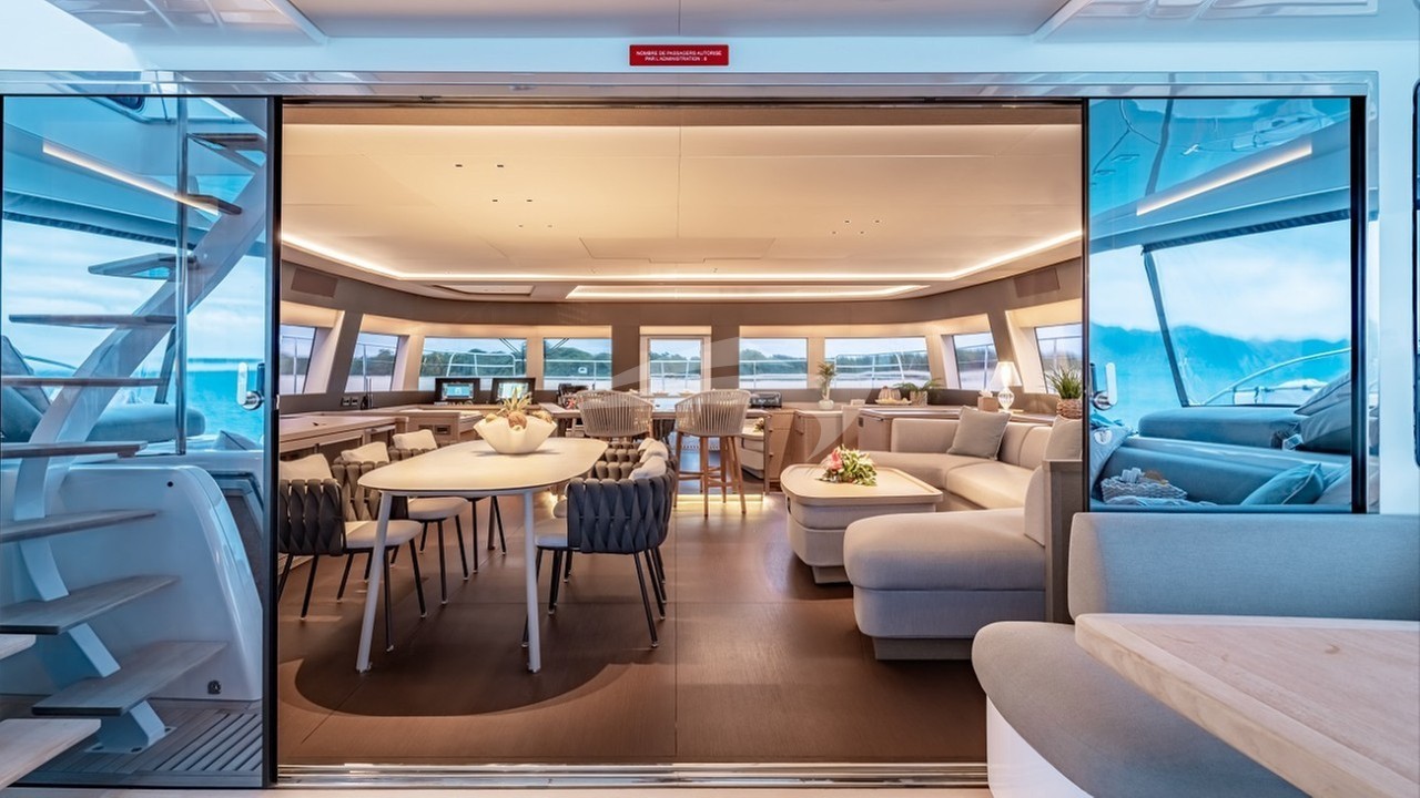 The exceptional deck area multiplies the living spaces and access to the sea.