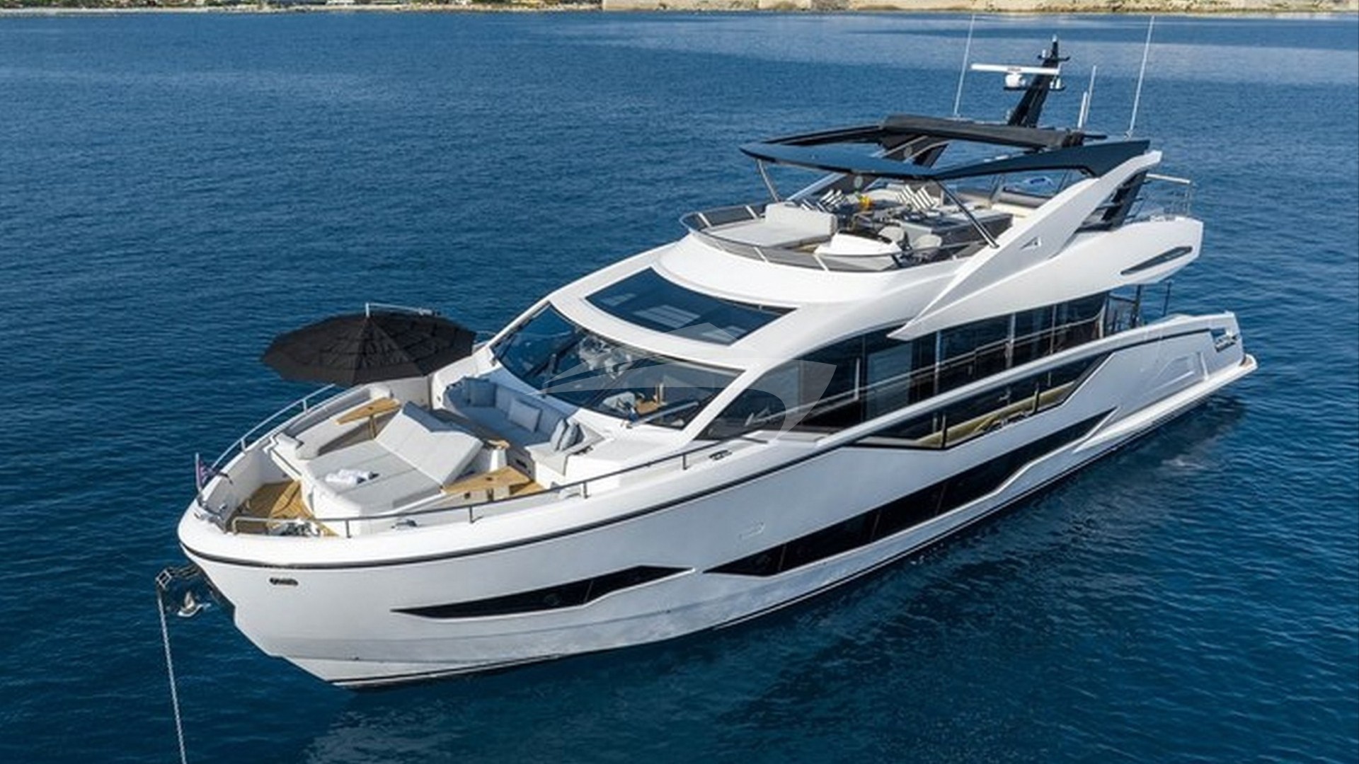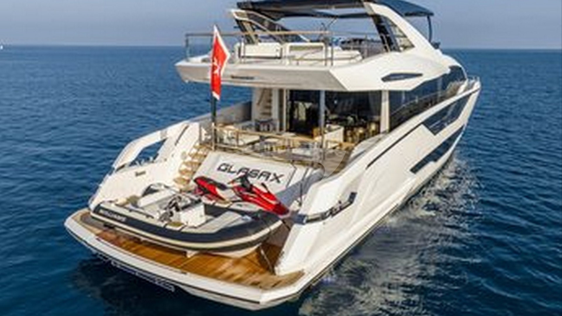 Glasax Yacht Charter is a 88' superyacht built by Sunseeker in 2022. She sleeps 8 and holds 4 crew and is located in West Mediterranean and West Mediterranean. She can be booked for a private luxury charter at a rate of $99,017 per week. Please check with your Denison Charter Specialist for more info.