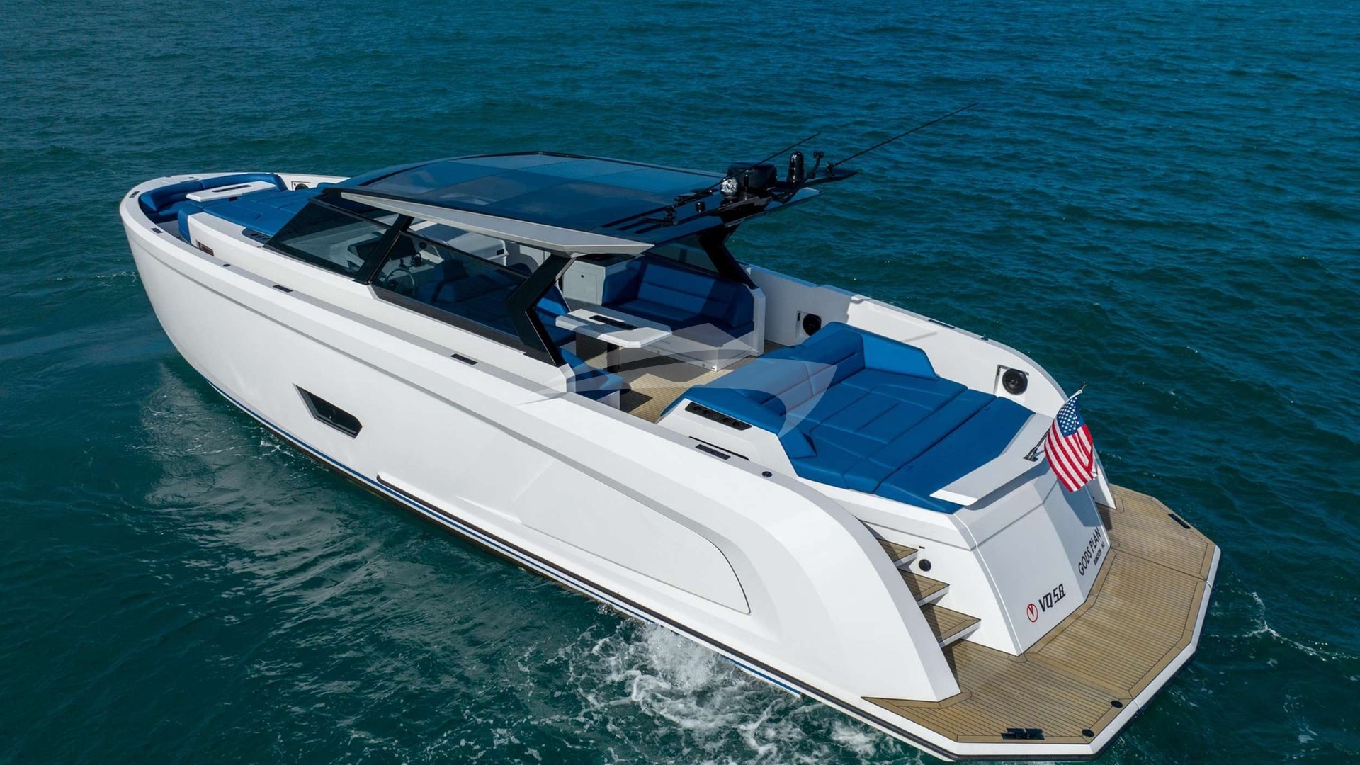 Gods Plan Yacht Charter is a 58' superyacht built by Custom in 2022. She sleeps 4 and holds 2 crew and is located in East Coast United States and East Coast United States. She can be booked for a private luxury charter at a rate of $45,000 per week. Please check with your Denison Charter Specialist for more info.