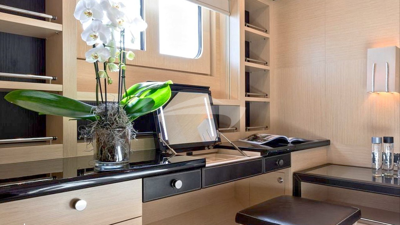 GRACE yacht can accommodate 12 guests across six cabins, including a full-beam main deck master suite, with an office and dressing room. A second main deck double cabin means this area is ideal for a family who wants a little bit of privacy.