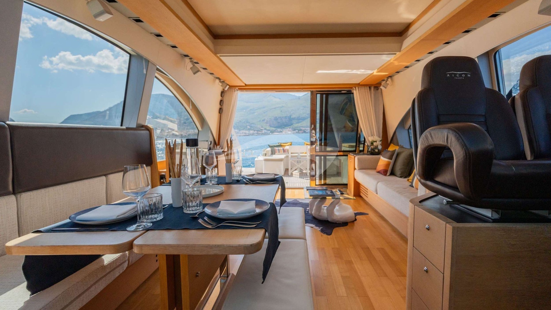 Gynah Yacht Charter is a 60' superyacht built by Aicon in 2015. She sleeps 6 and holds 2 crew and is located in West Mediterranean and West Mediterranean. She can be booked for a private luxury charter at a rate of $20,968 per week. Please check with your Denison Charter Specialist for more info.