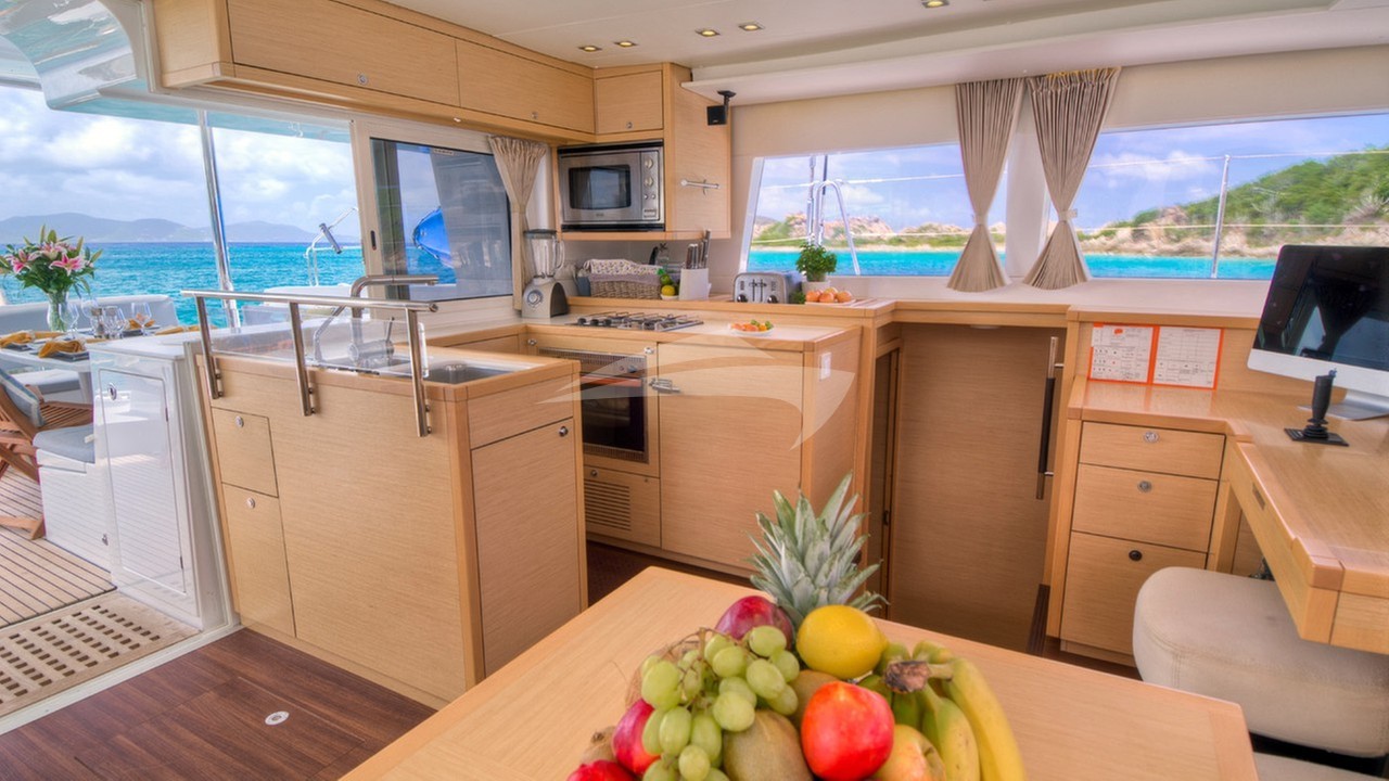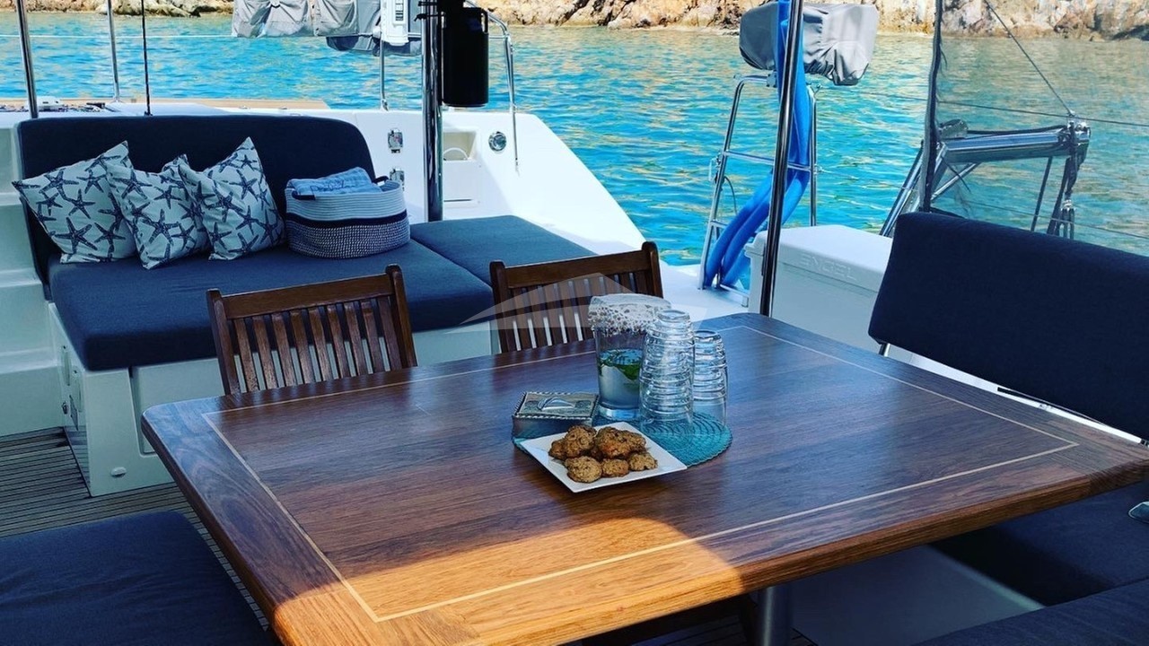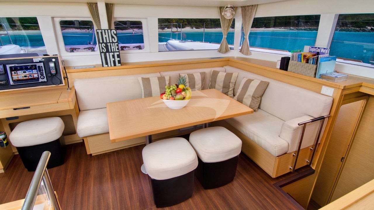 2012 45' Lagoon catamaran with 3 spacious queen guest cabins each with a private ensuite head and stall shower. Top deck seating and top deck padded sun lounge.