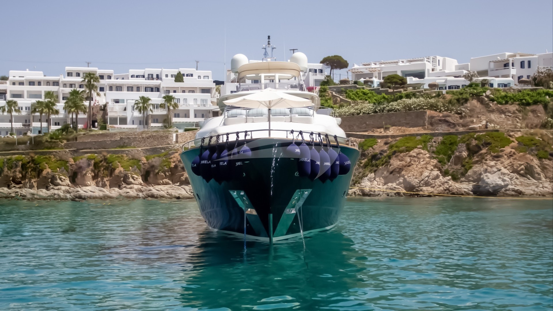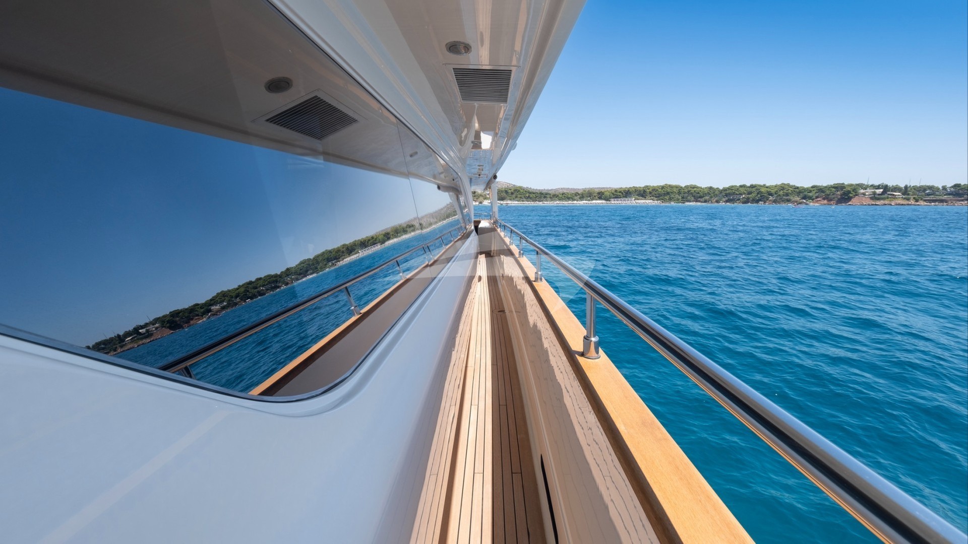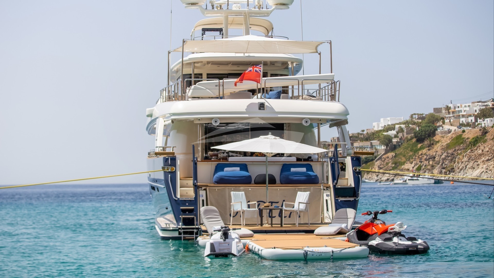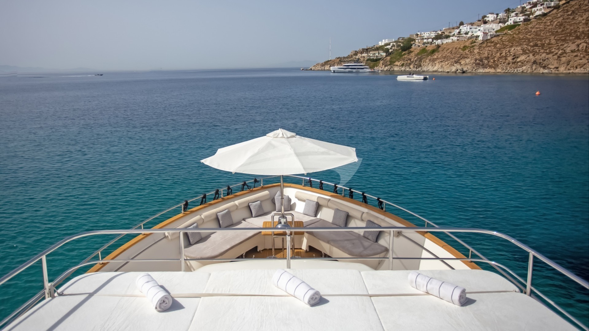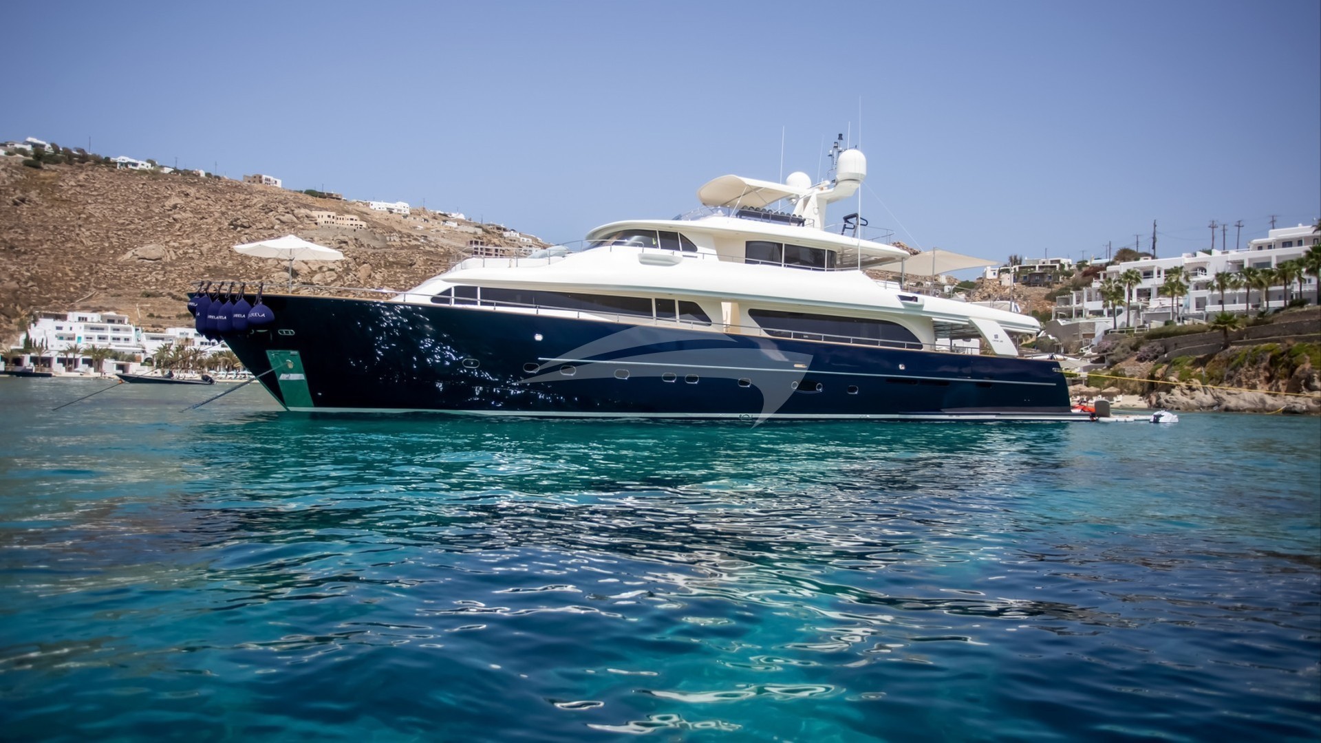 Hag Yacht Charter is a 101' superyacht built by Custom Line in 2007. She sleeps 8 and holds 5 crew and is located in East Mediterranean and East Mediterranean. She can be booked for a private luxury charter at a rate of $79,189 per week. Please check with your Denison Charter Specialist for more info.