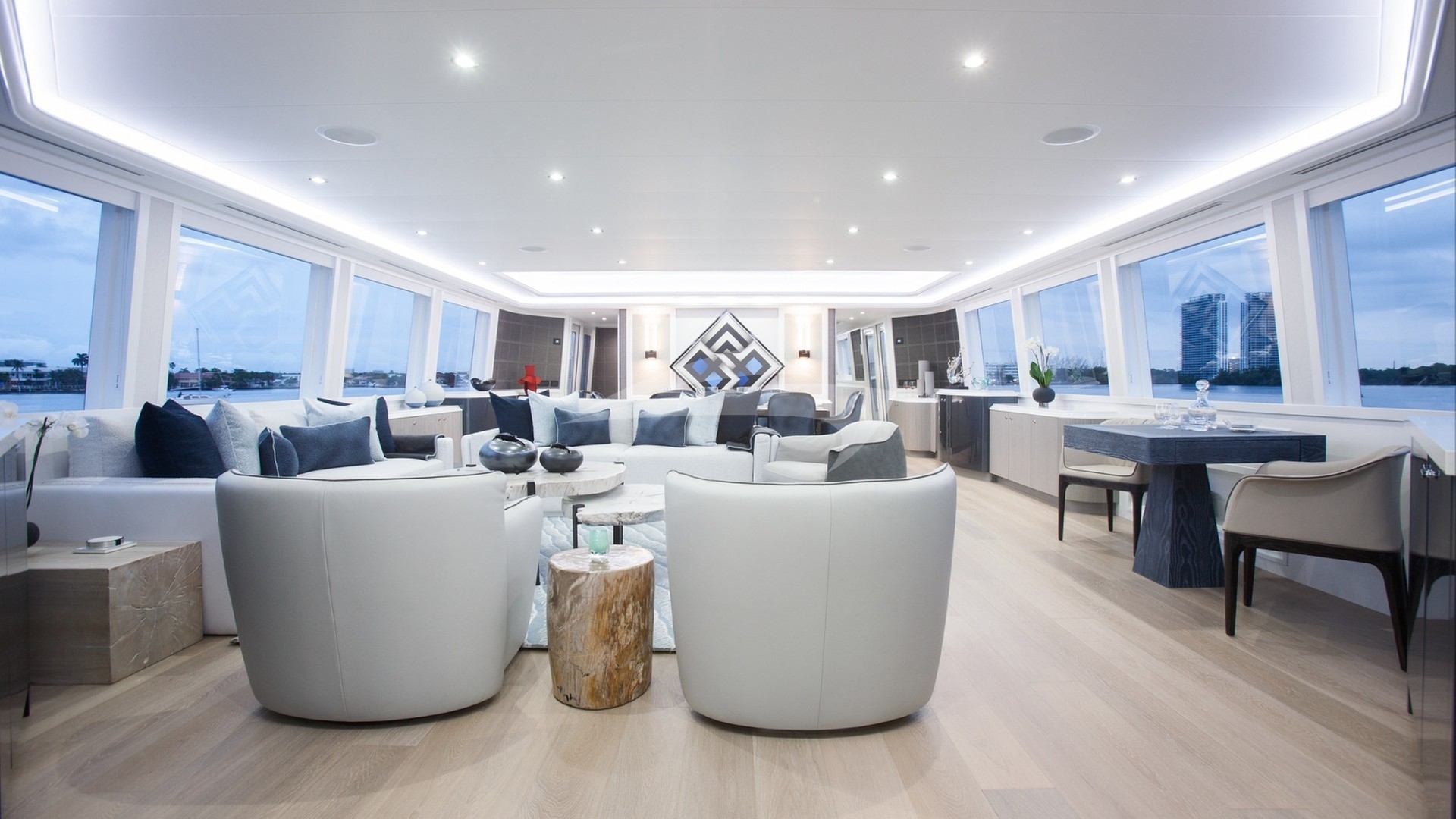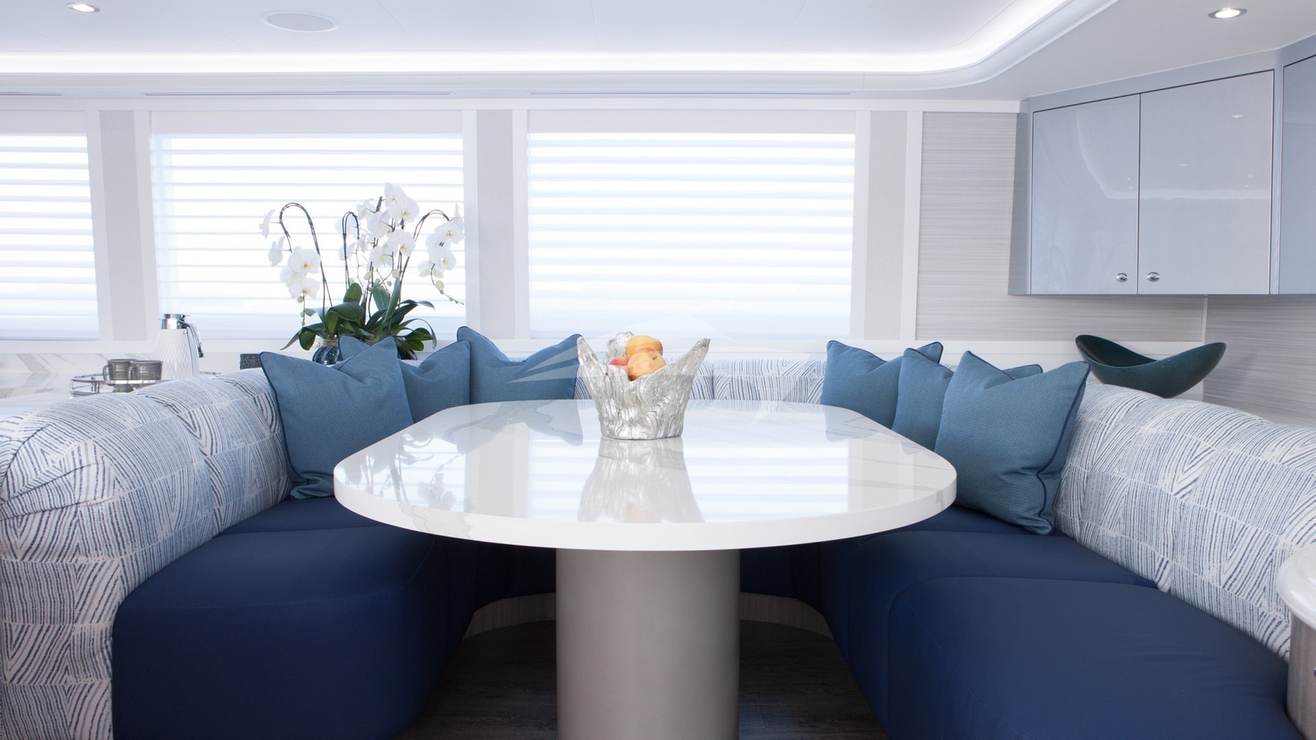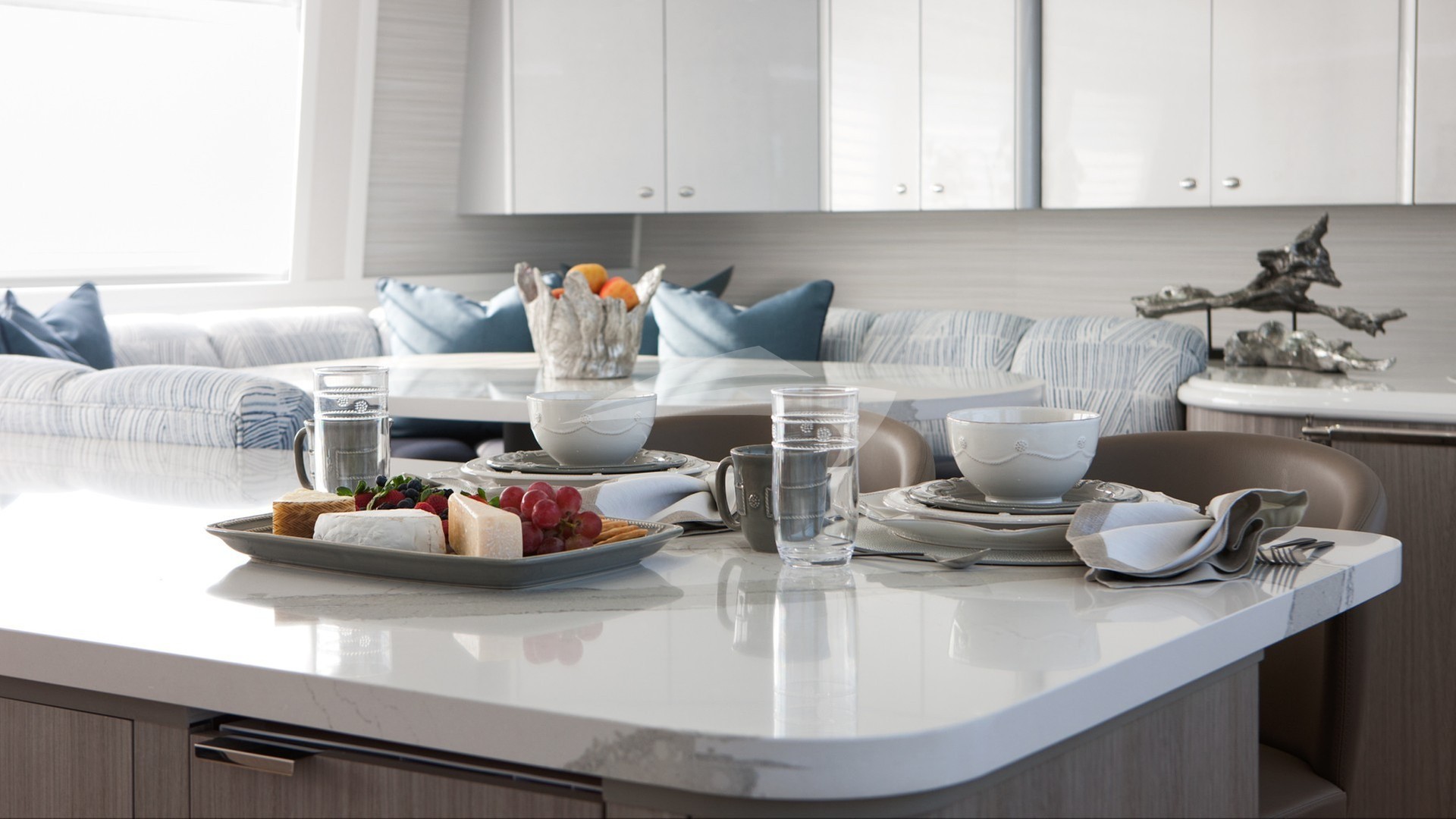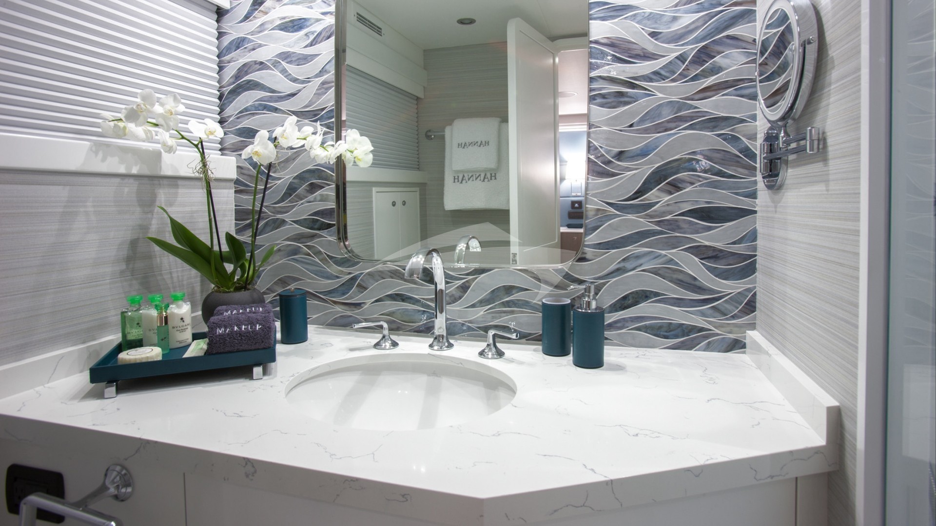 HANNAH had a complete transformation during her extensive nine-month refit completed in December 2020 by world-class designer Destry Darr. She is the most highly customized and modern 112 Westport available for charter on today's market. The idea was to create a high-end contemporary style but with comfortable, charter-friendly appeal. When you enter the main salon the wire brushed oak engineered wood flooring, cool tones of satin pearlescent and grays, plenty of texture and open modern spaces immediately convey a contemporary coastal feel. The hallmark 112 Westport country kitchen forward was upgraded with all-new appliances, Cambria quartz countertops, new television installed and additional cabinetry to starboard. With thorough attention-to-detail, with a project done right - each area of the yacht has been addressed bringing the entire yacht up to 2021 standards.