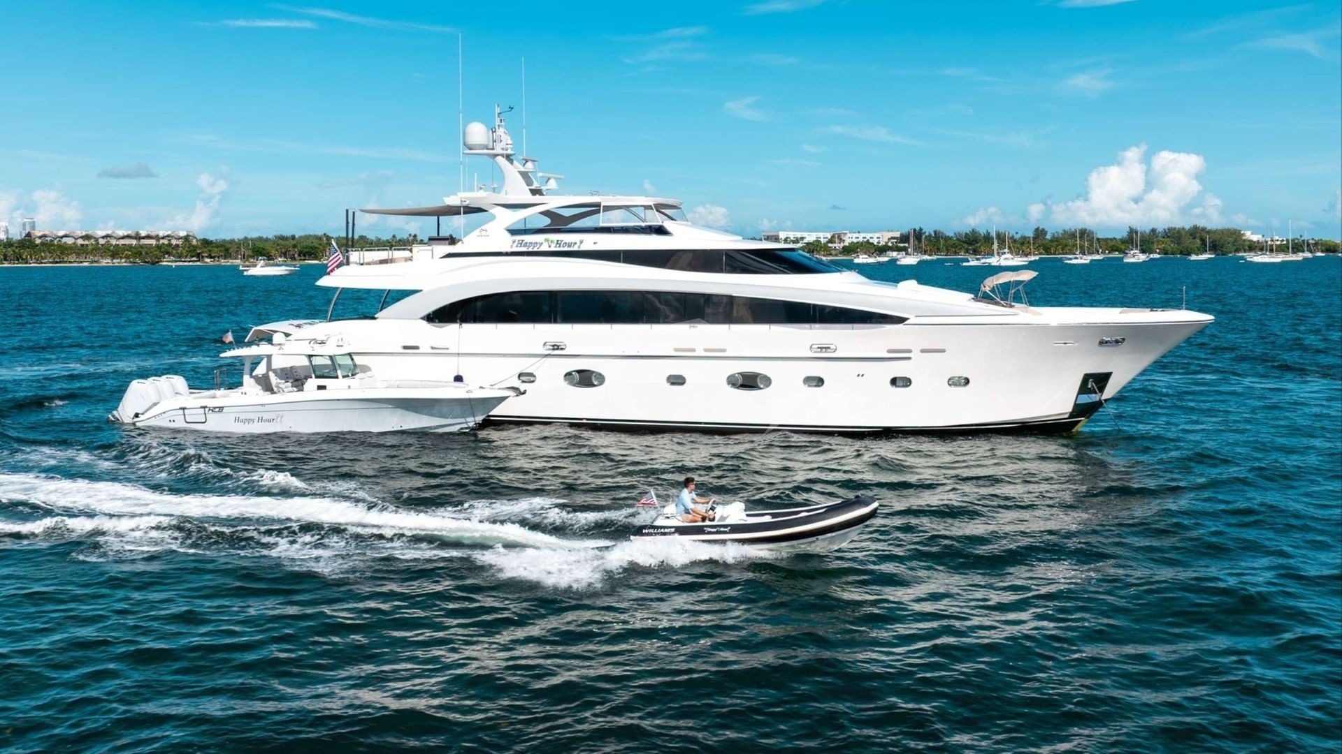 Happy Hour Yacht Charter is a 109' superyacht built by Horizon in 2017. She sleeps 10 and holds 5 crew and is located in Caribbean, East Coast United States and Caribbean, East Coast United States. She can be booked for a private luxury charter at a rate of $105,000 per week. Please check with your Denison Charter Specialist for more info.