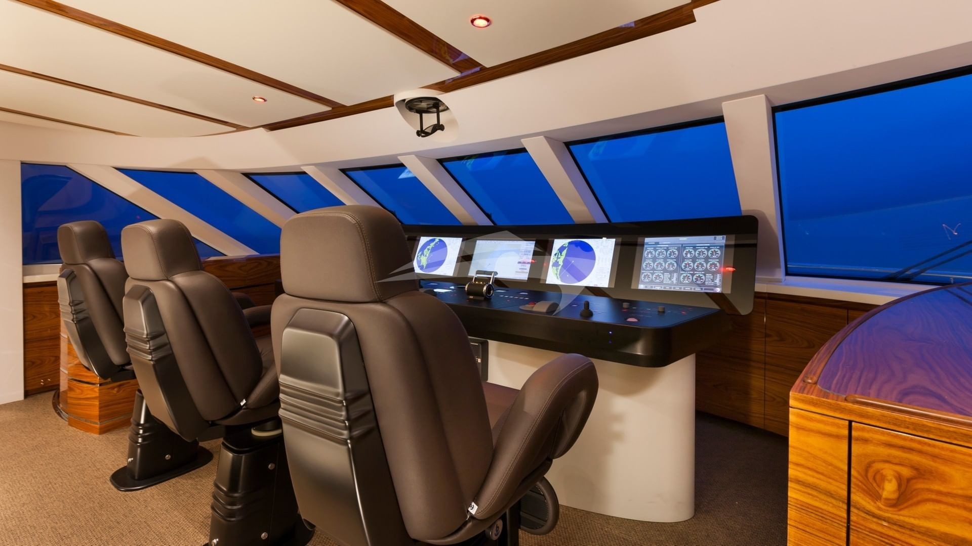 The result, is 457 Gross Registered Tons powered by twin 3696 HP MTU engines that deliver in excess of 25 knots top speed as well as efficient ocean-crossing range at reduced speed. Her three decks plus Sundeck design provides outstanding elegance for her passengers comfort. The Helm is loaded with the latest State-Of-The-Art equipment to keep you and your group as safe on the water as you are at home in bed.