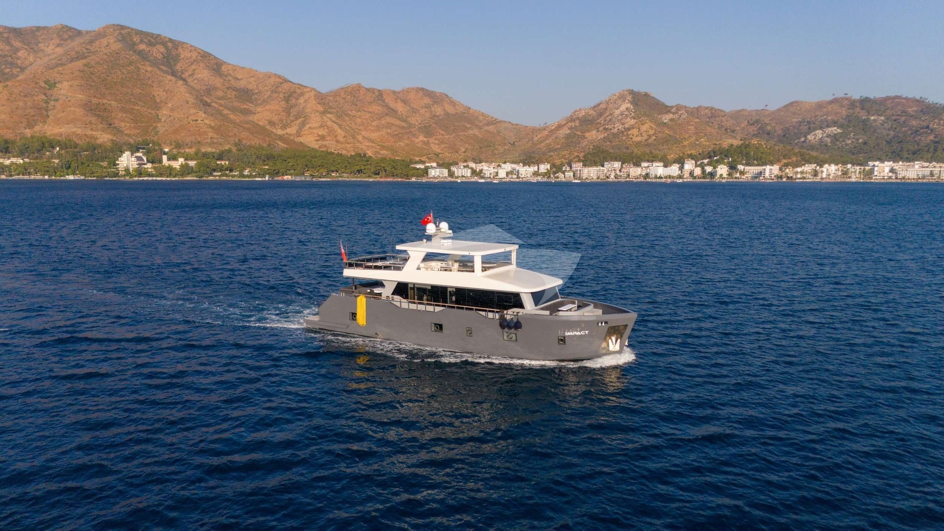 Impact Yacht Charter is a 78' superyacht built by Custom in 2023. She sleeps 10 and holds 5 crew and is located in East Mediterranean and East Mediterranean. She can be booked for a private luxury charter at a rate of $24,675 per week. Please check with your Denison Charter Specialist for more info.
