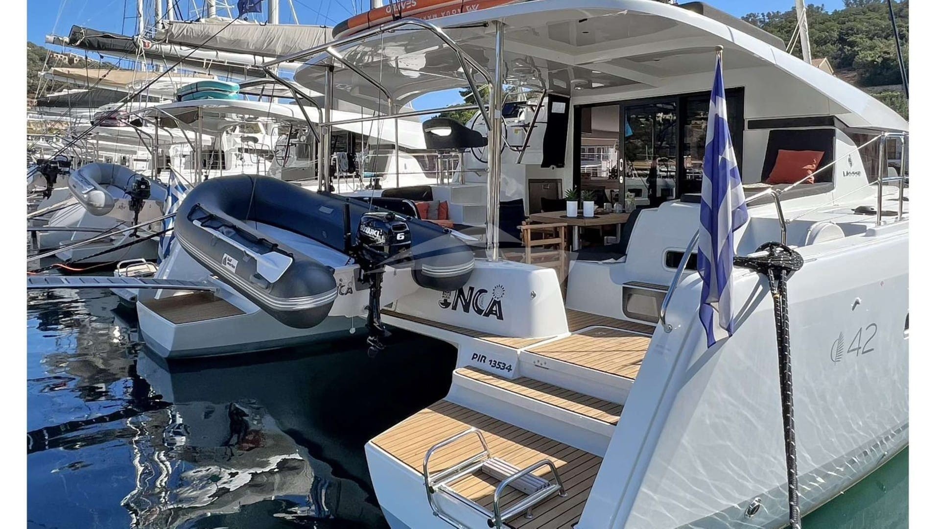 Inca Yacht Charter is a 42' superyacht built by Lagoon in 2024. She sleeps 8 and holds 2 crew and is located in East Mediterranean and East Mediterranean. She can be booked for a private luxury charter at a rate of $8,123 per week. Please check with your Denison Charter Specialist for more info.