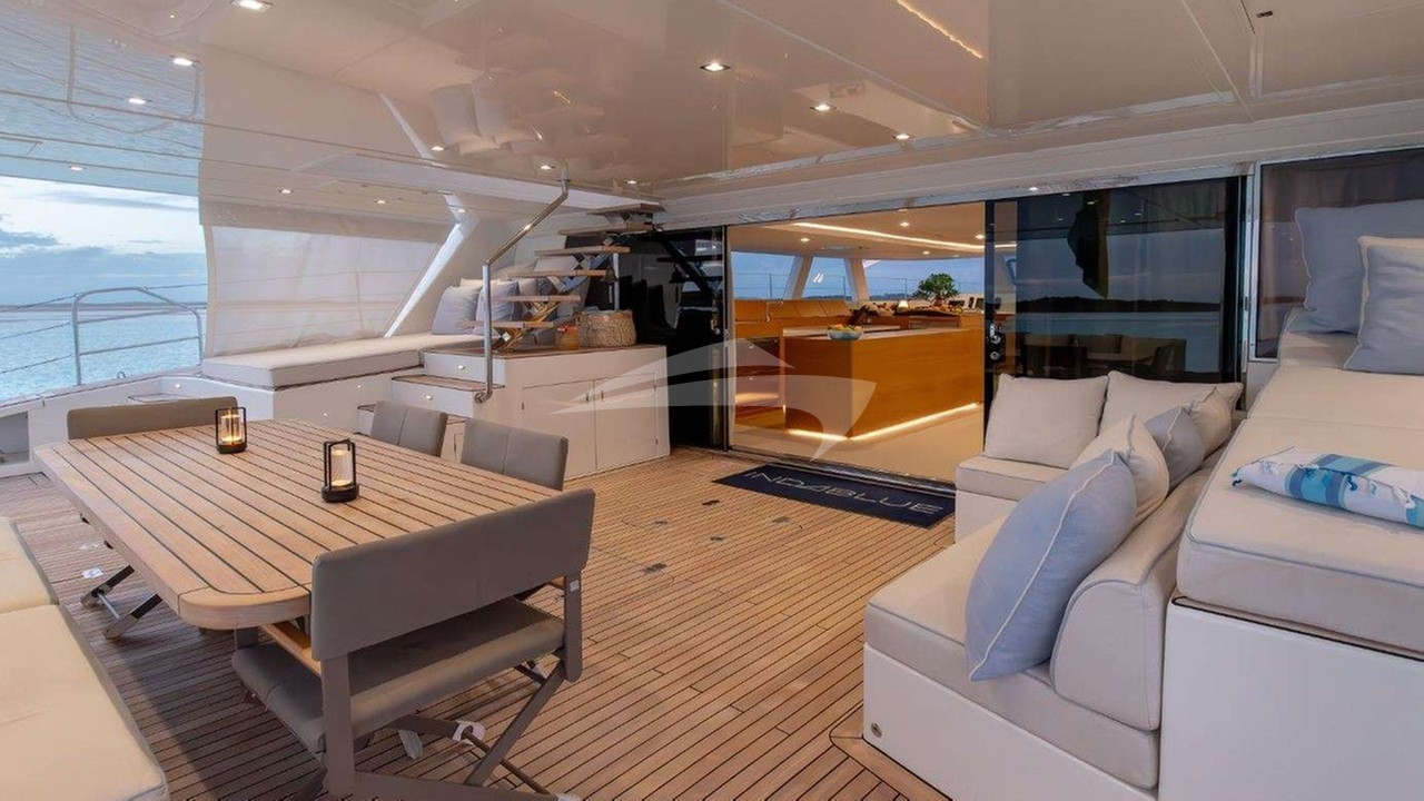 Indablue Yacht Charter is a 74' superyacht built by Sunreef Yachts in 2017. She sleeps 7 and holds 4 crew and is located in Caribbean and Caribbean. She can be booked for a private luxury charter at a rate of $55,000 per week. Please check with your Denison Charter Specialist for more info.