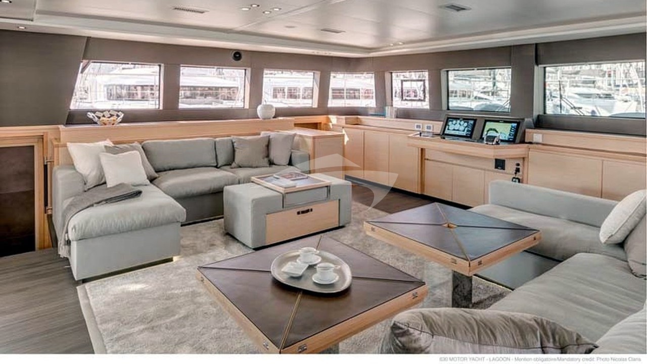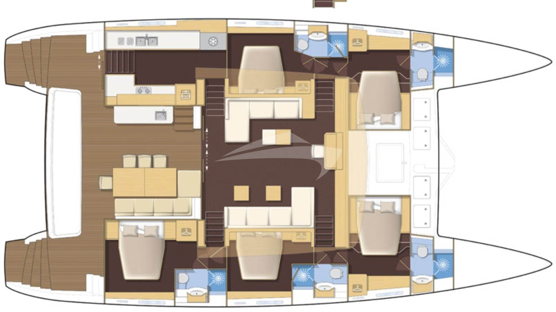Kaskazi Four is a well-known Lagoon 620, pretty new, launched in May 2016.Nevertheless, compared to twin yachts, she is very innovative: metal grey painted hull, interiors with five double guest cabins, each one with ensuite toilet and shower, galley downstairs which allows to have a huge wide saloon upstair.Two cabins in the starboard hull can be also converted into a unique suite.Air conditioning, watermaker, generator, solar panels and aeolic gens, every kind of water Toys. Nothing’s missing on Kaskazi, including a professional wine cellar.But, mainly, Kaskazi is run by the Captain Francesco Rinauro and his crew who know by heart and better than anybody else the summer preferred sailing area where they have always been living and operating: the south west coast of Italy, Sicily, Aeolian islands, Ponza archipelago, capri, Ischia, Procida.Diving, fishing, archeological paths, the impressive beauty of active volcanoes, the Italian history and culture and… one of the most beautiful sea worldwide.OptionsAir conditioning, watermaker 280 l/h, generator 17kw, 20 solar pannels, 2Inverter, fan in each cabin, wine cellar, ice maker in the cockpit, children net protection.