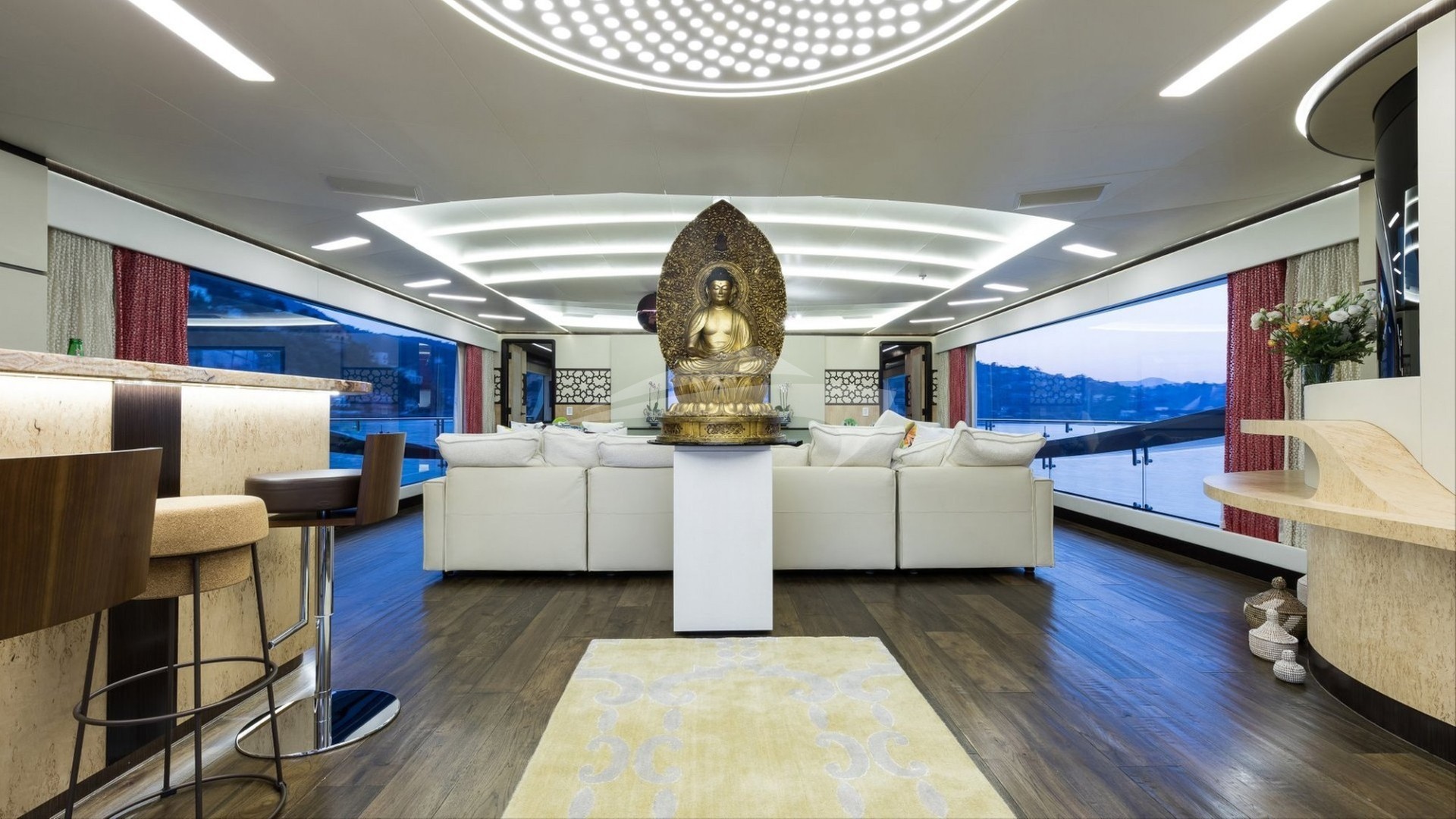 An exclusive boutique hotel on water, KHALILAH is perfect for a group of friends and can welcome up to 11 guests on board overnight. She has an owner's suite and a VIP located on the main deck' both are ultra-luxe with an Asian-fused modern vibe, have full-length picture windows that overlook the ocean, and a spa-style en-suite bathroom.