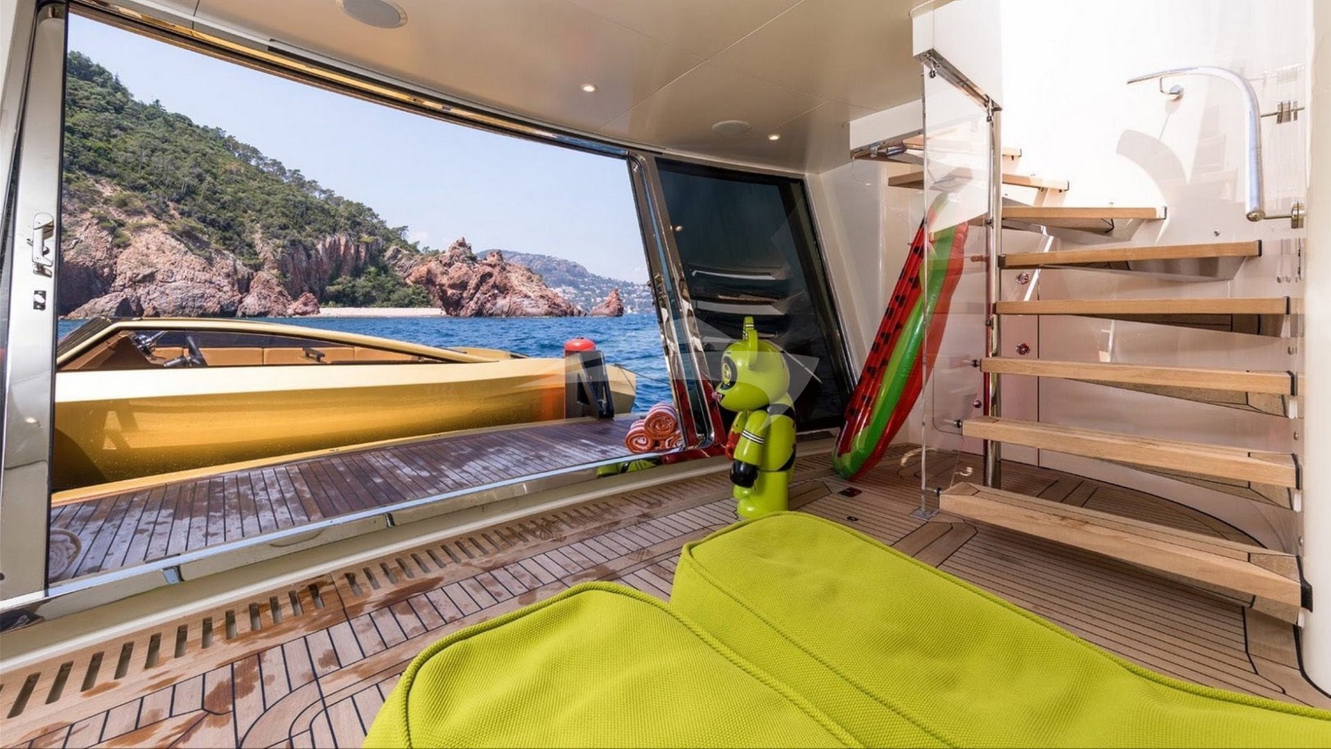 KHALILAH's beach club is a water enthusiast's dream. With large glass windows that open to create a seamless connection with the sea, it's the ideal spot for lounging by the water or launching into aquatic adventures. The yacht comes equipped with an impressive array of water toys, including Jet Skis, a hoverboard, jet surf, paddleboards, and more, ensuring endless fun for guests of all ages.
