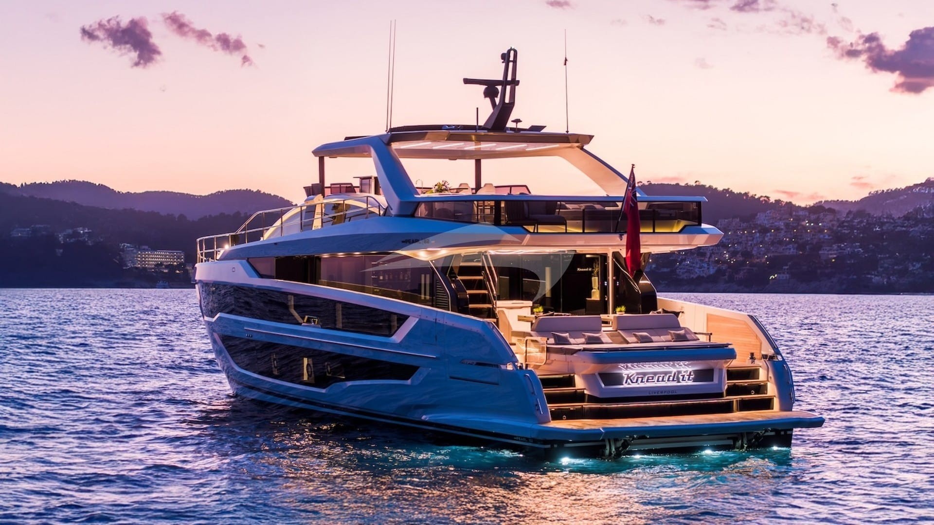 KNEAD IT is a sleek and sophisticated 25.3 m yacht built in 2024 by Pearl Yachts and styled by Dixon Yacht Design. Her profile and layout elevate what one expects in this size range. Large expanses of glazing, a striking flybridge and a welcoming foredeck lounge all position her as a standout among 24m to 30 m motor yachts. With accommodation for up to 10 guests across 5 well appointed cabins, she offers both intimacy and comfort for families or friends seeking a refined charter experience. With a cruising speed of around 24 knots, she has the agility to carry you to a new port each evening, while maintaining a welcoming and remarkably comfortable atmosphere on board.