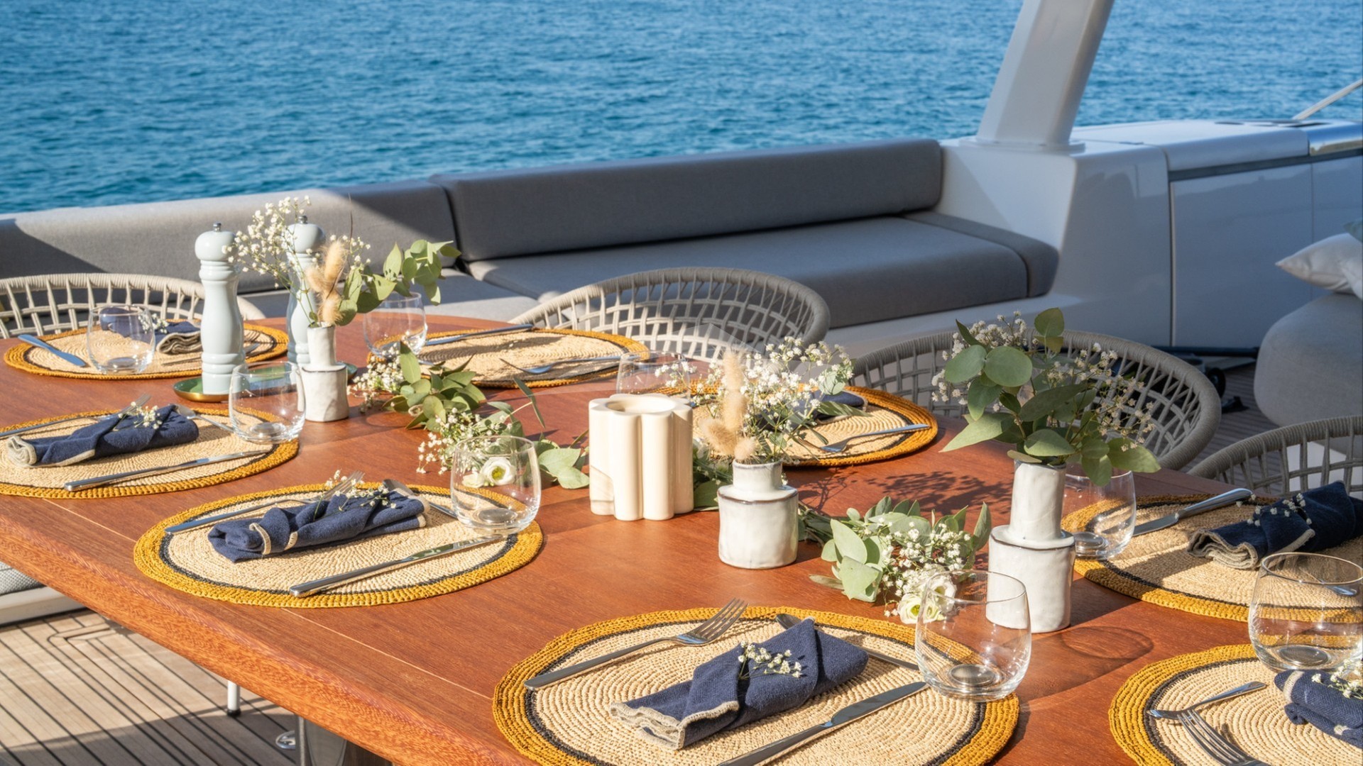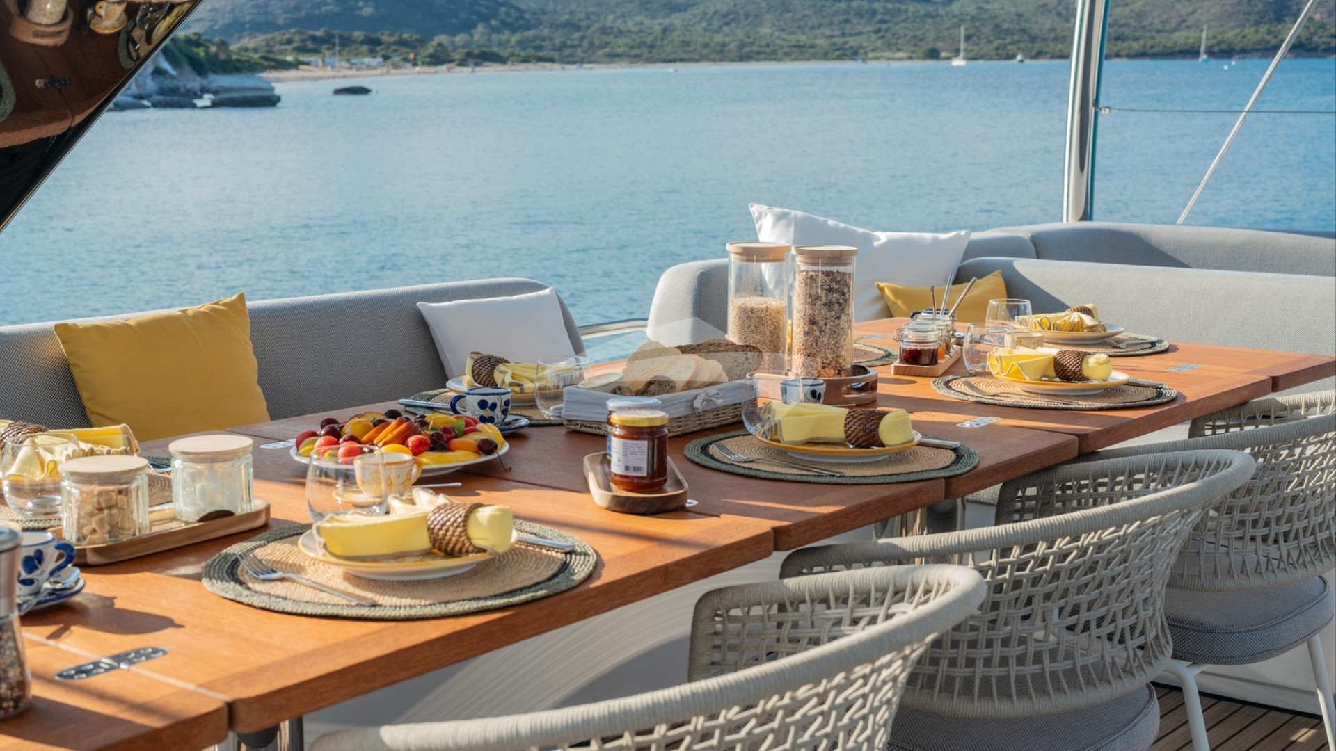 Her rich and varied cuisine adapts to all your desires and requirements on board.