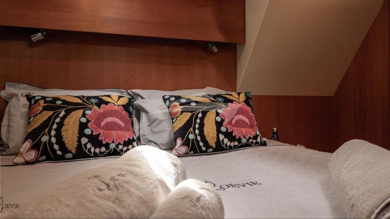 Interchangeable double cabin; the double bed can be separated into 2 twin beds.