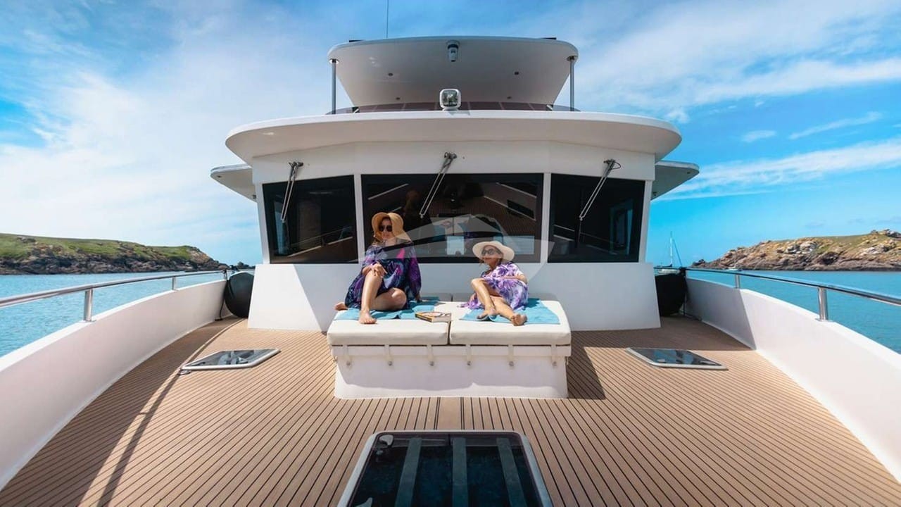 L'indecis Yacht Charter is a 59' superyacht built by Neel Trimarans in 2024. She sleeps 6 and holds 2 crew and is located in Caribbean, West Mediterranean and Caribbean, West Mediterranean. She can be booked for a private luxury charter at a rate of $26,899 per week. Please check with your Denison Charter Specialist for more info.