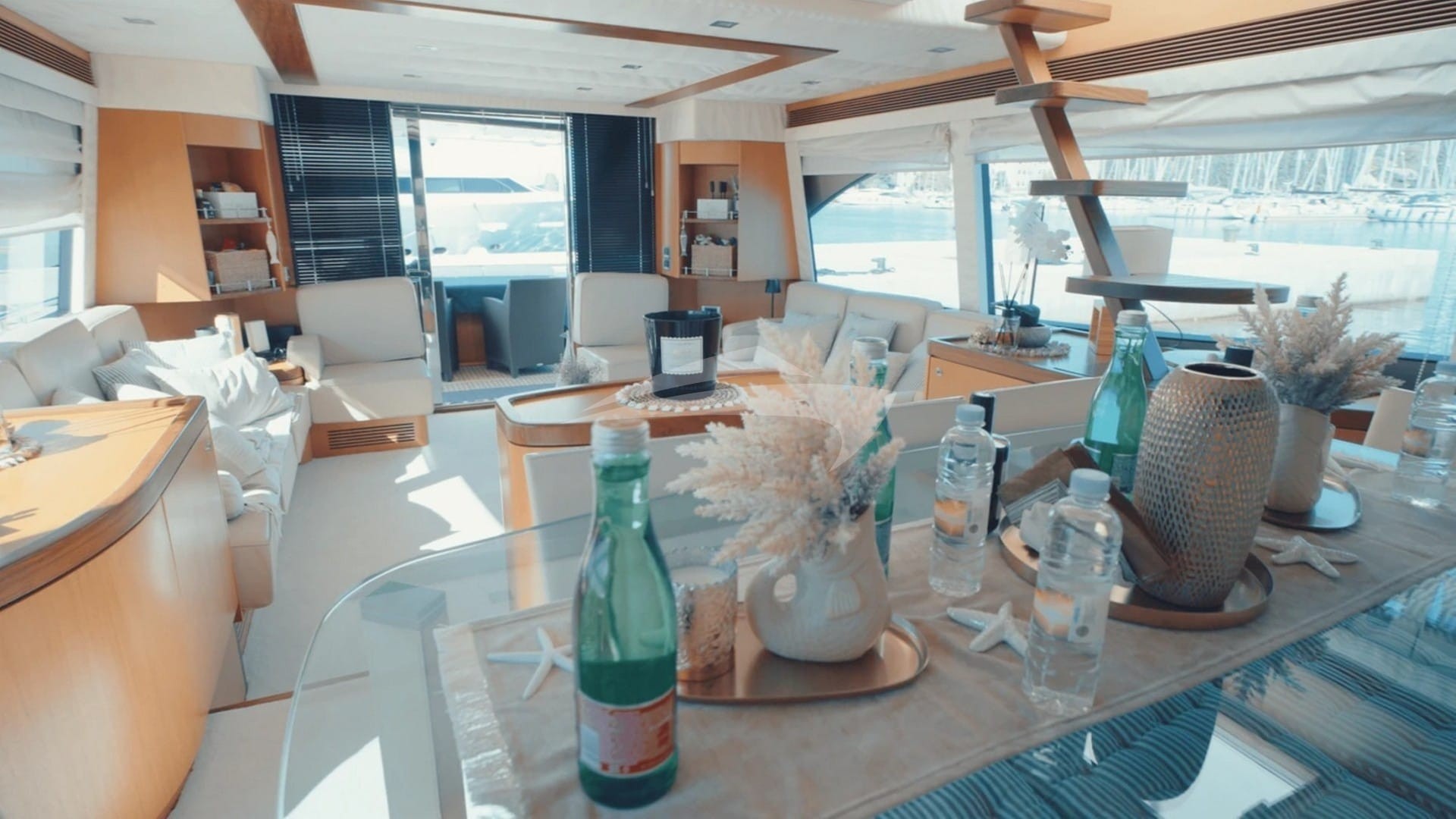 Linnett Yacht Charter is a 74' superyacht built by Ferretti in 2005. She sleeps 8 and holds 3 crew and is located in East Mediterranean and East Mediterranean. She can be booked for a private luxury charter at a rate of $37,547 per week. Please check with your Denison Charter Specialist for more info.