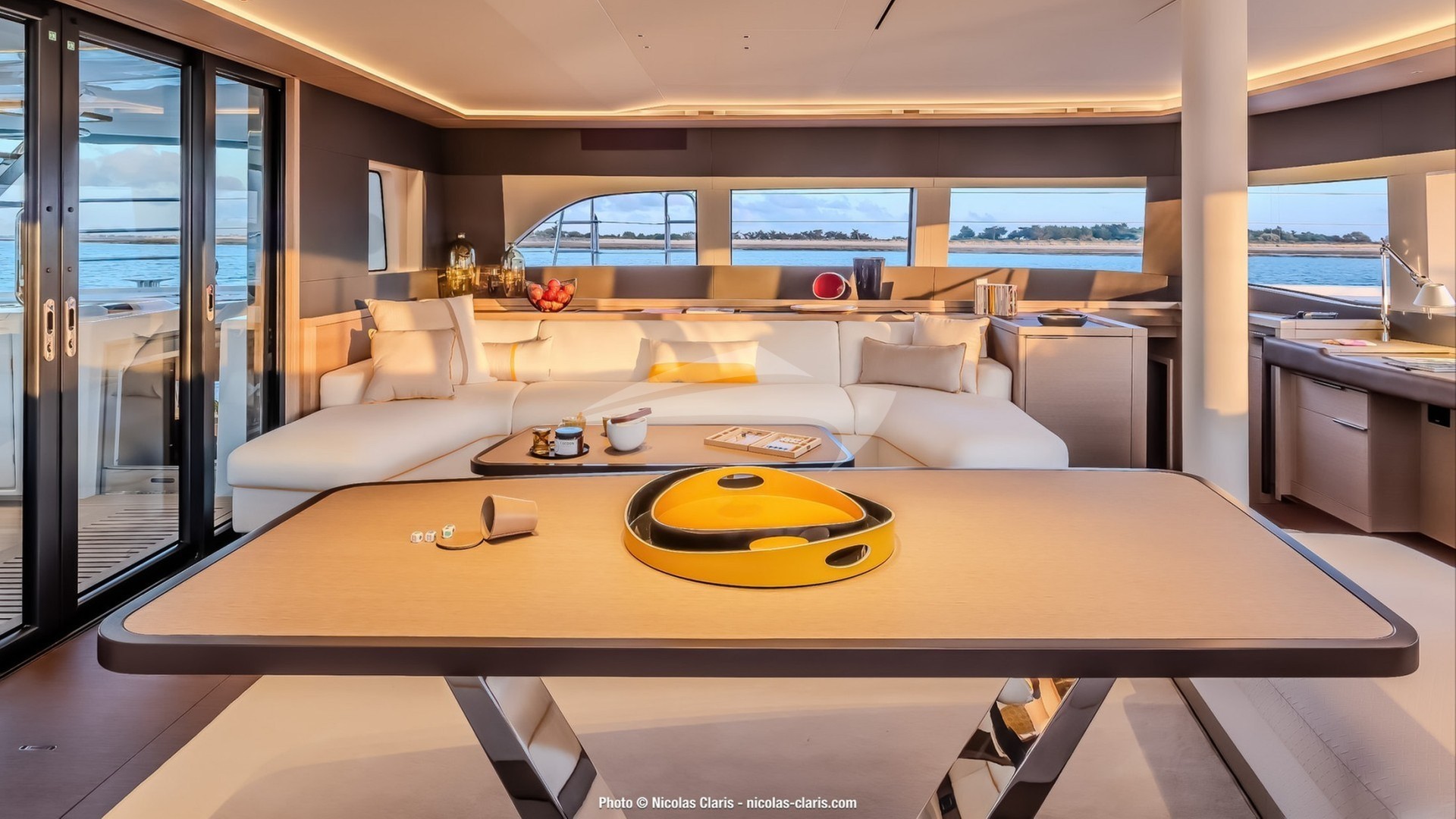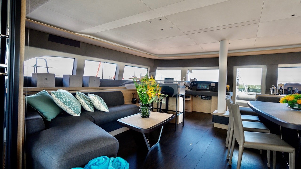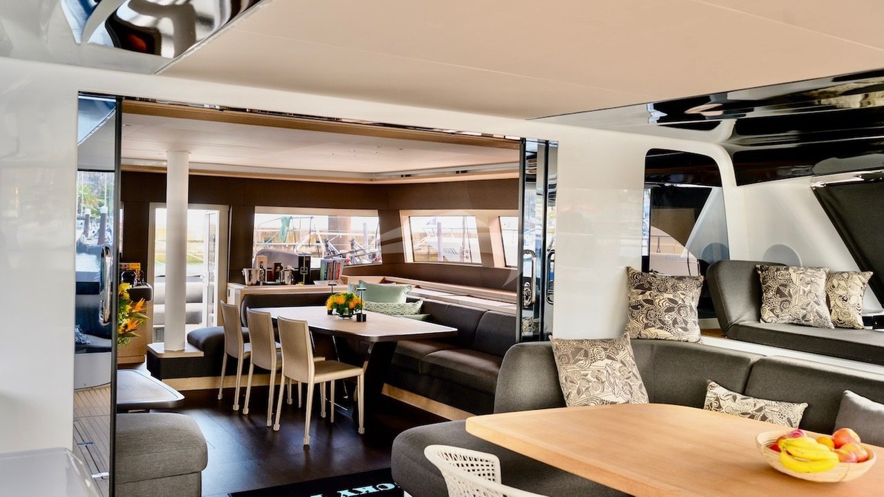 The galley down in the port aft hull means the guest seating areas are undisrupted and plentiful in the main saloon which blends seamlessly onto the aft deck.