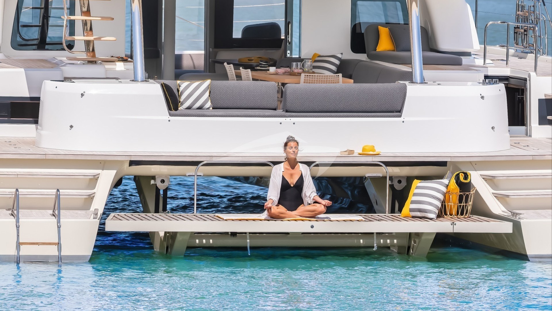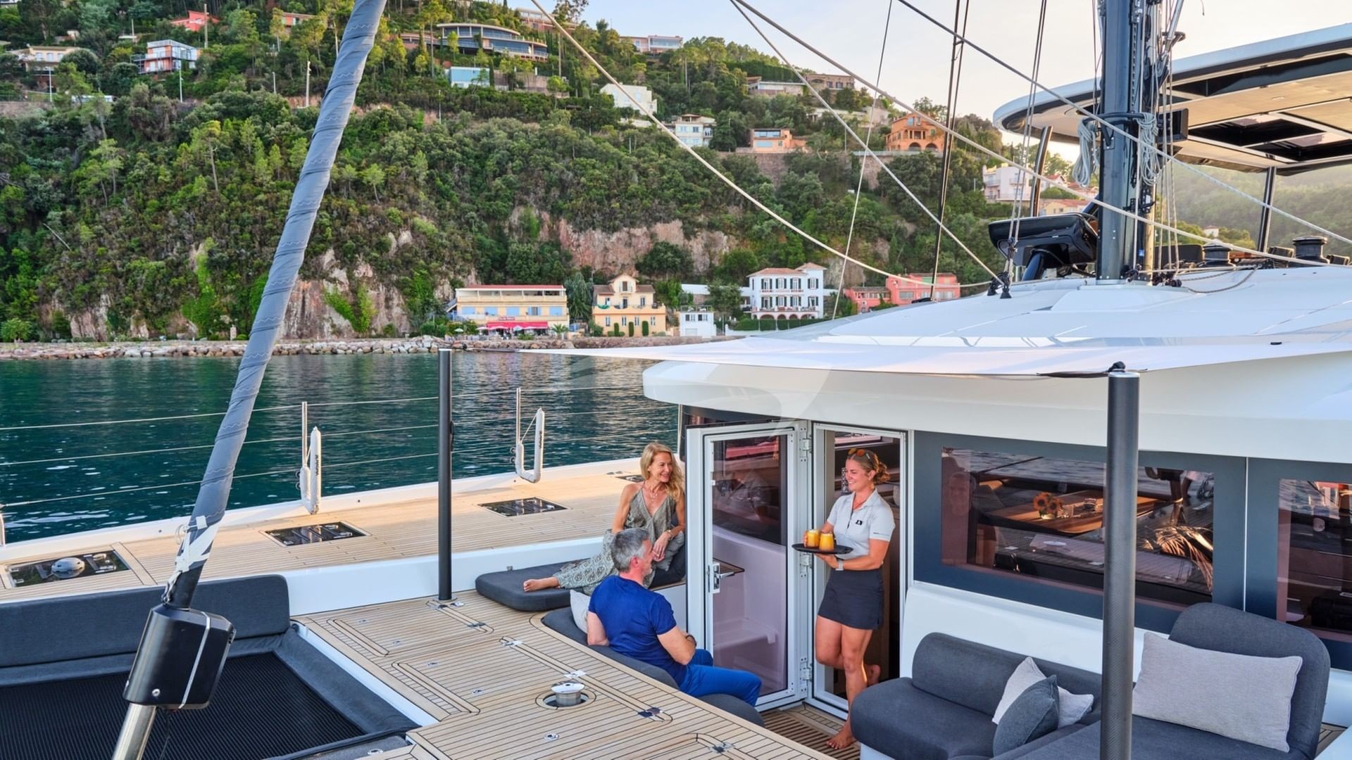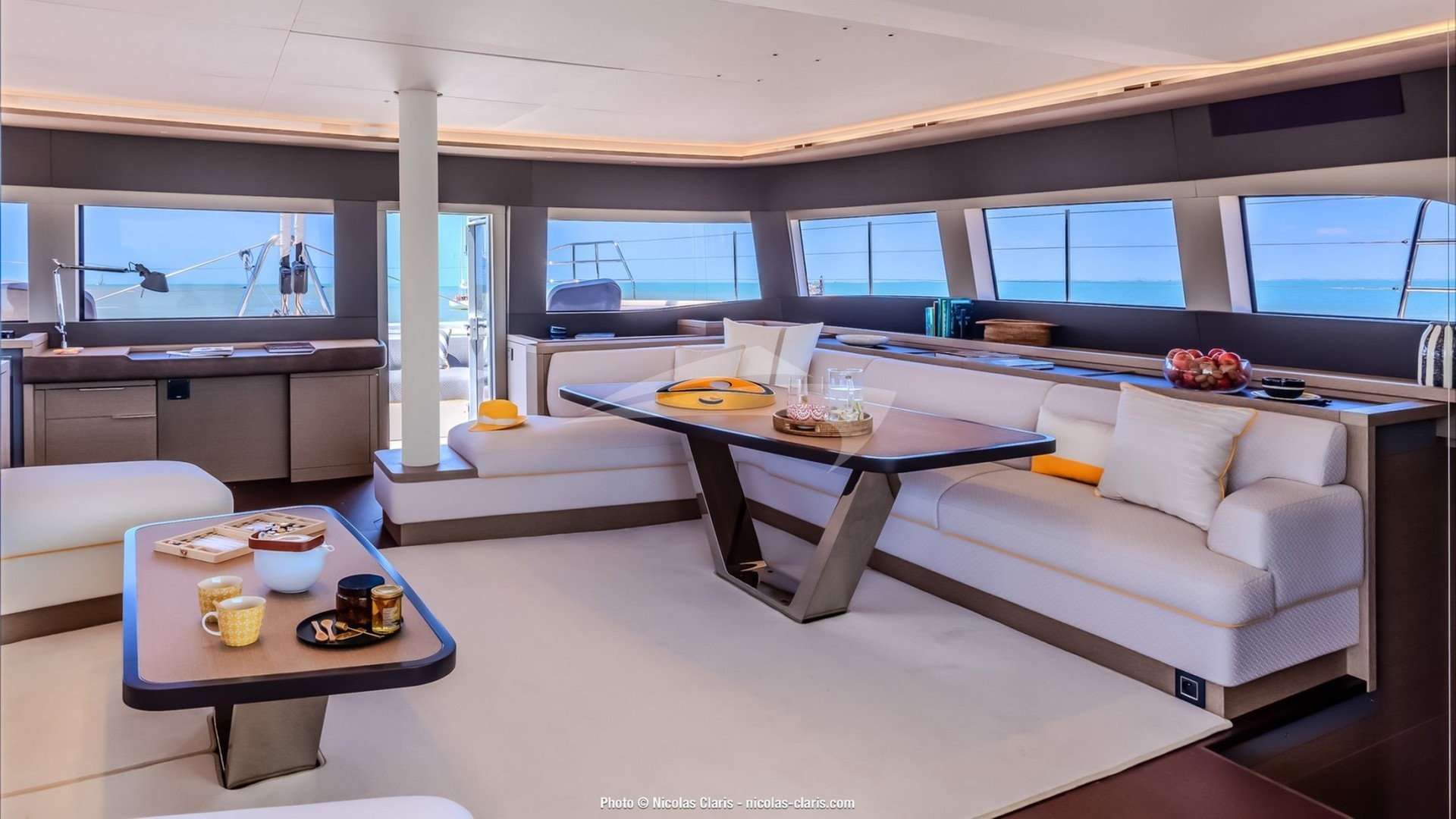 The galley down in the port aft hull means the guest seating areas are undisrupted and plentiful in the main saloon which blends seamlessly onto the aft deck.