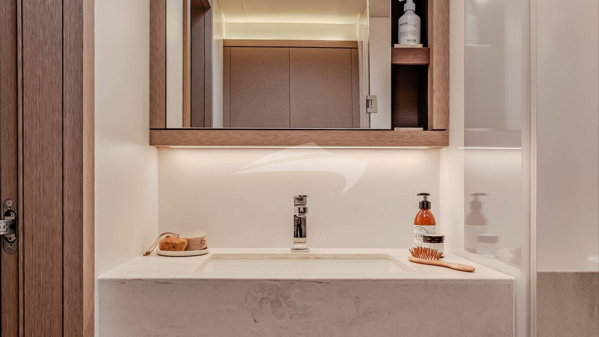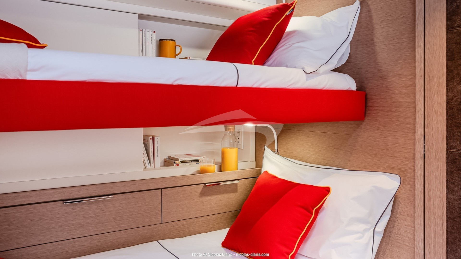 3 double cabins each equipped with their own en-suite. there is certainly no skimping on space. The crew will take the bunk cabin which is just off the galley.