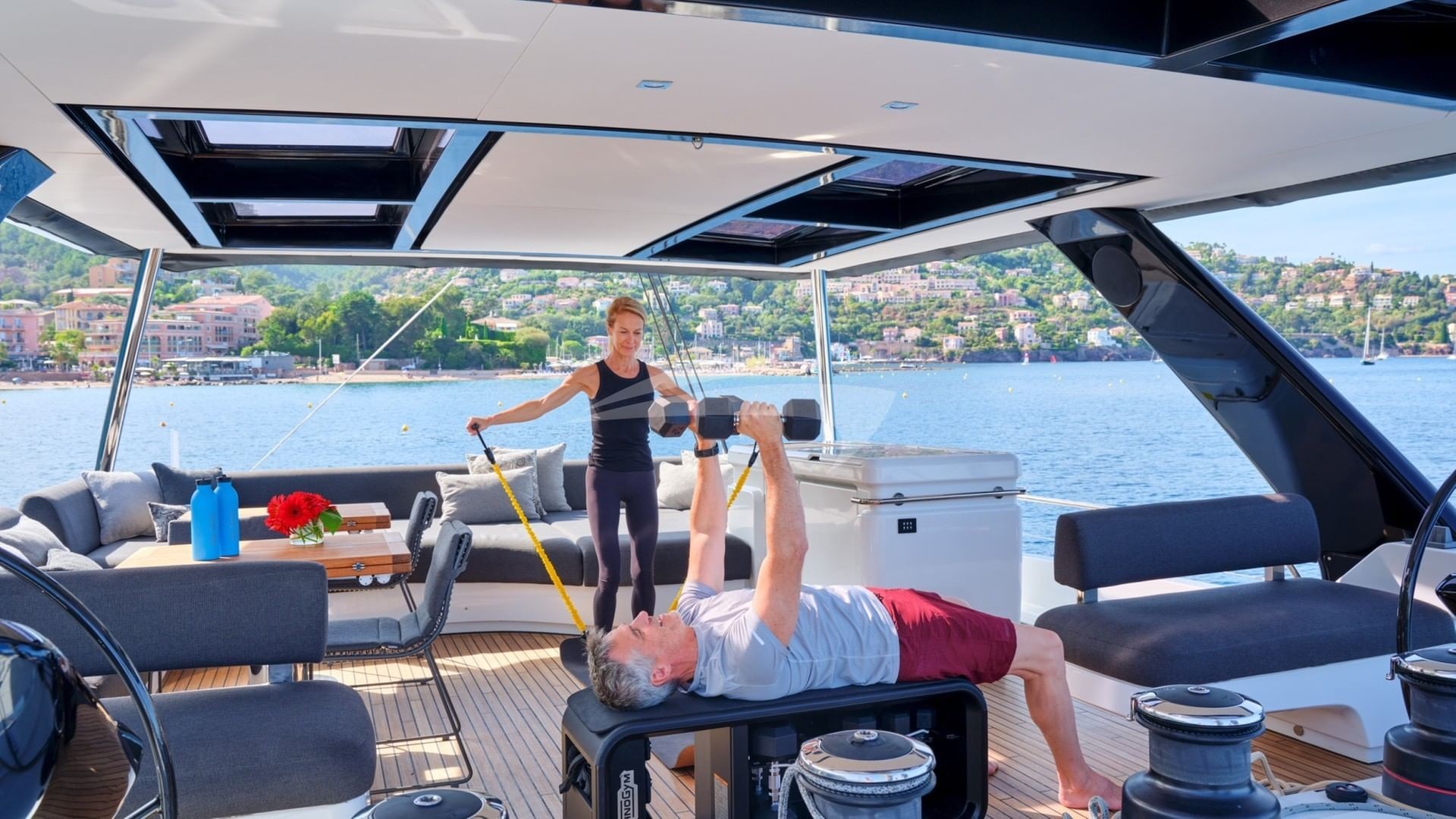 Lucky You boasts multiple and varied dining spaces to accommodate guests under all conditions, the flybridge is perfect for those breezeless evenings or for sunset cocktails and the aft dining area is ideal for the majority of dining experiences with the interior dining table available for cooler evenings.