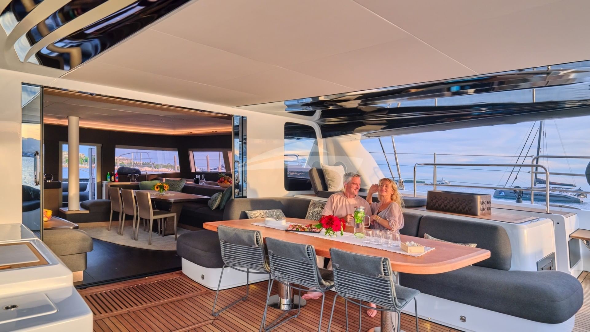Lucky You is brand new for 2025, a wonderfully spacious and well designed Lagoon Sixty5 sailing catamaran.
