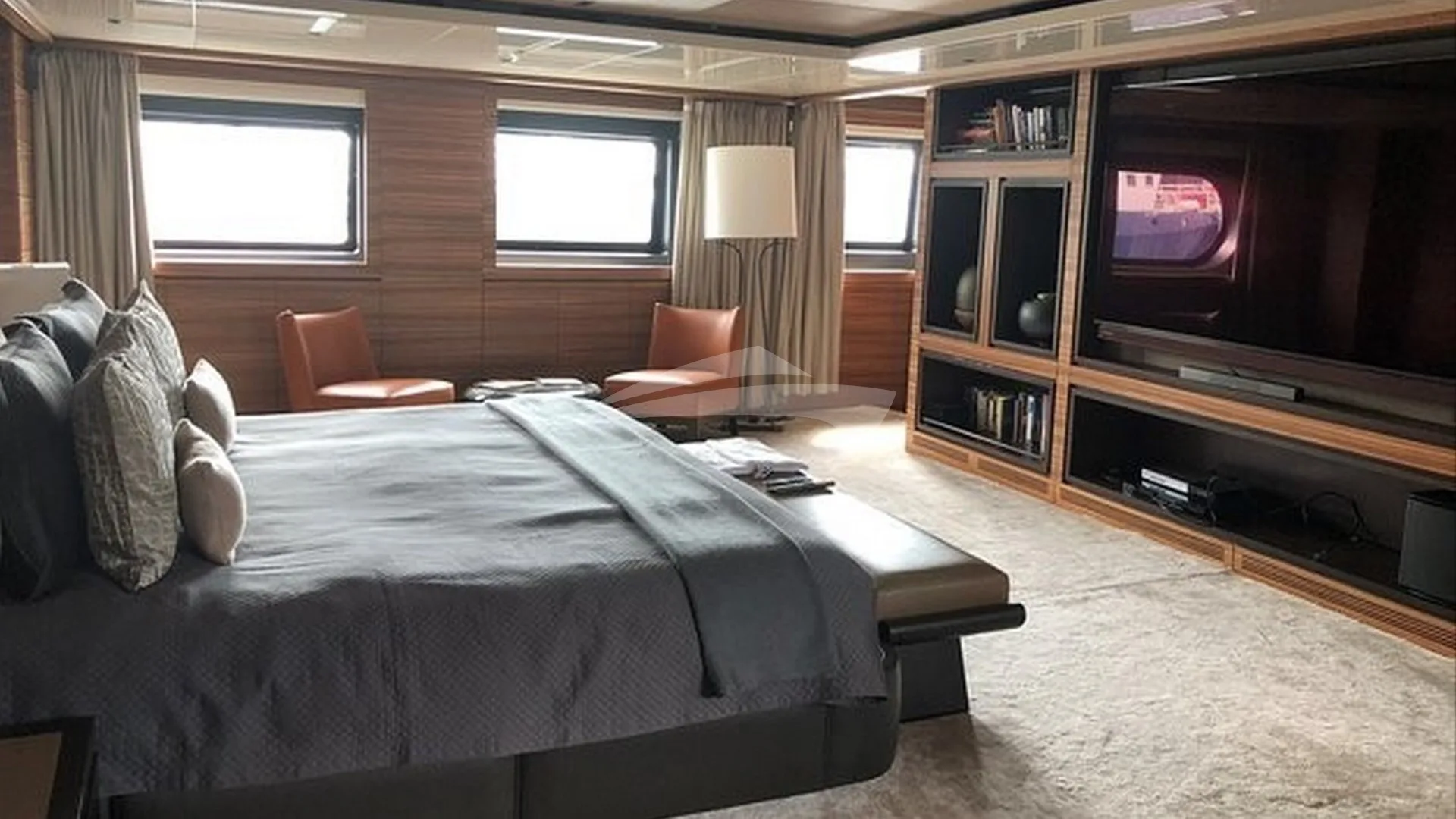Step inside to discover a world of refined luxury, where every detail has been meticulously crafted to cater to the most discerning guests. The yacht accommodates up to 12 charter guests in 6 lavishly appointed suites, including a full-beam Master suite complete with a private study, spacious walk-in wardrobe, and sumptuous en-suite bathrooms. For added convenience, a separate large office on the main deck features a library adorned with exquisite Hermès furniture.