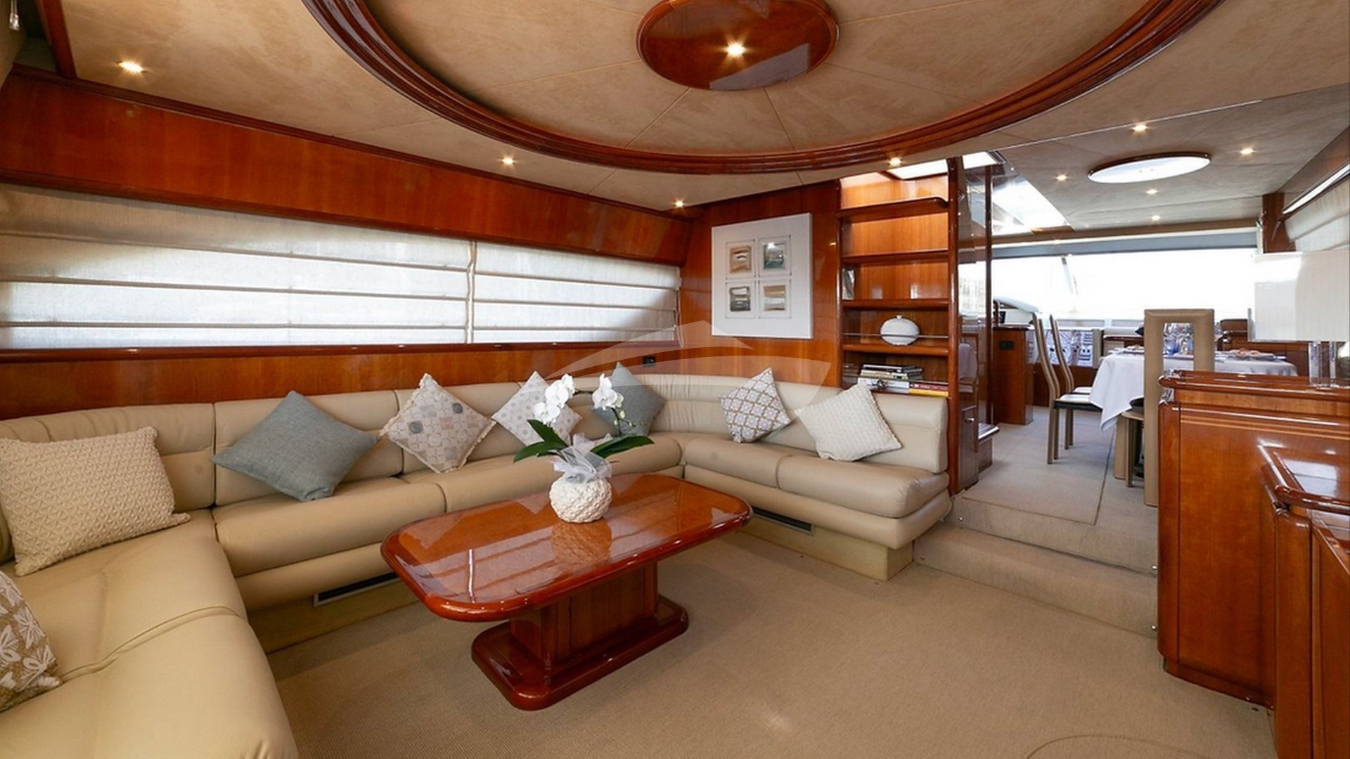 Maite is an elegant Ferretti 72 available for charter. Spacious and refined with 3 comfortable suites for up to 6 guests. Crew of 2 members (third crew member available upon request). She is based in the Marina of Cannigione. Elegant, minimal and refined interiors, large windows giving brightness to the area, wide salon, comfortable sofas. Maite offers a table for up to 8 guests in salon and well equipped galley with fridge, oven, dishwasher, washing machine. The night area offers accommodation for up to 6 guests in 3 suites. Separated crew area.