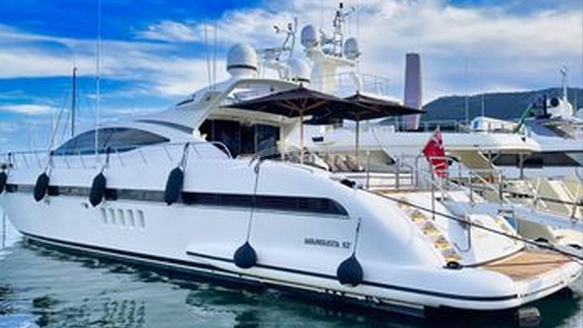 Manu Yacht Charter is a 92' superyacht built by Mangusta in 2006. She sleeps 9 and holds 3 crew and is located in West Mediterranean and West Mediterranean. She can be booked for a private luxury charter at a rate of $57,063 per week. Please check with your Denison Charter Specialist for more info.