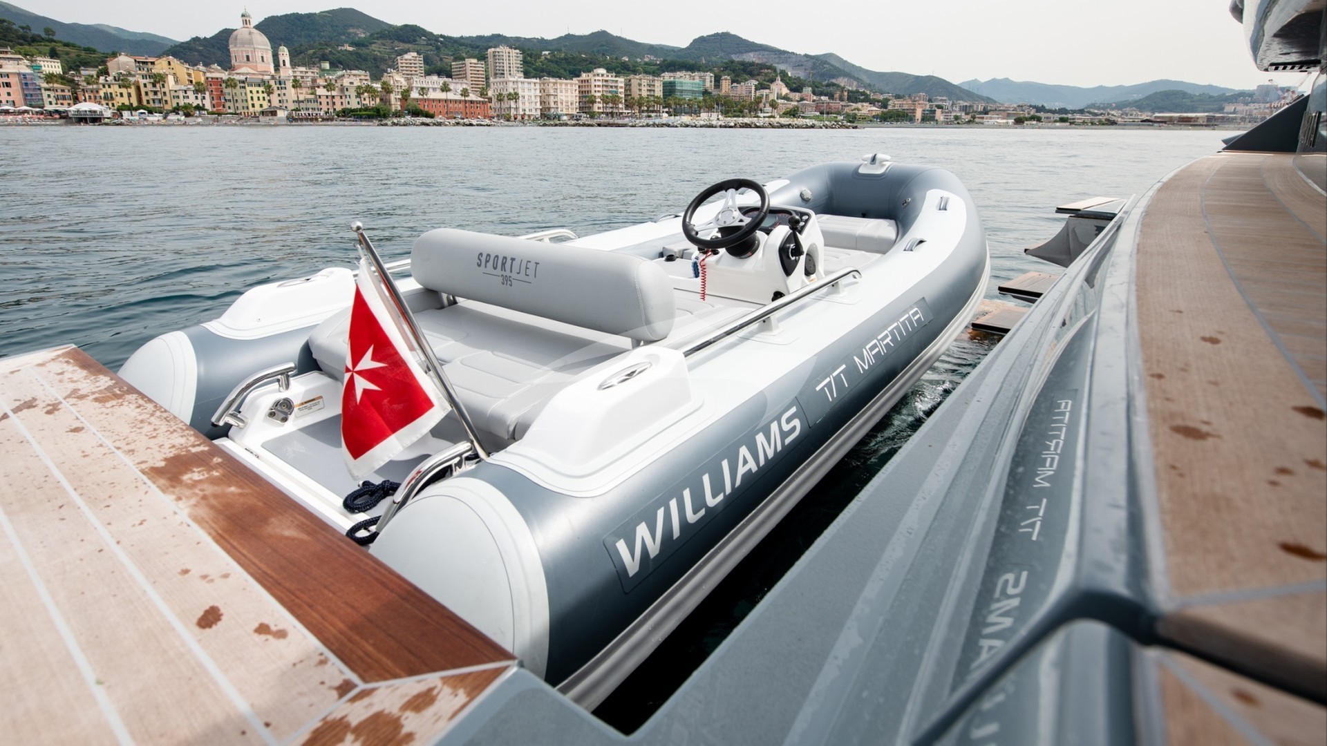 From here, guests can board the Williams Sportjet 395 tender for swift shore excursions or take a ride in either the inflatable bed or inflatable tube. MARTITA yacht also comes with an Aquamarine Vapor paddleboard and a Cabrinha kitesurf.