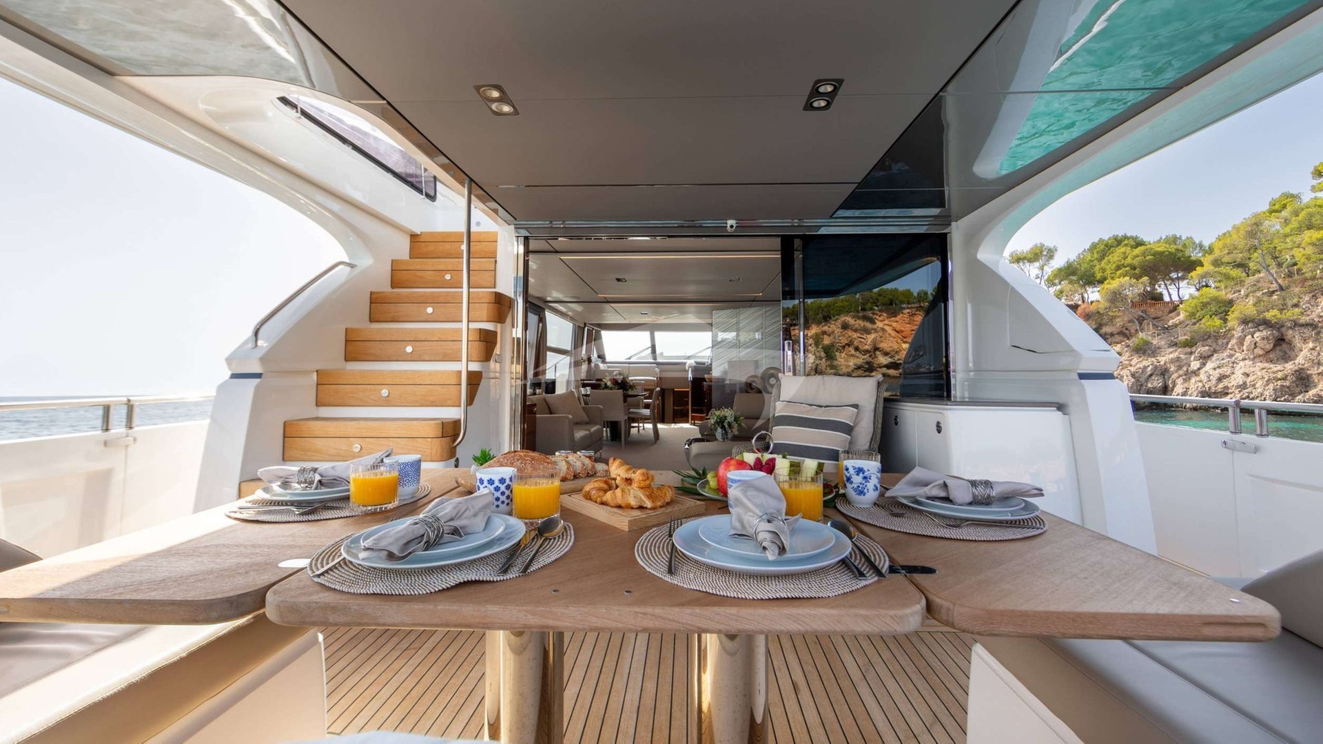 Mio Barco Yacht Charter is a 81' superyacht built by Princess in 2020. She sleeps 8 and holds 3 crew and is located in West Mediterranean and West Mediterranean. She can be booked for a private luxury charter at a rate of $55,333 per week. Please check with your Denison Charter Specialist for more info.