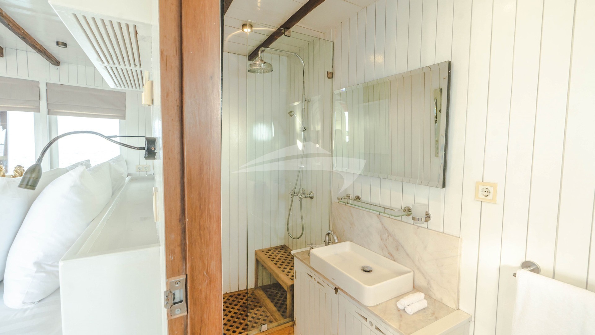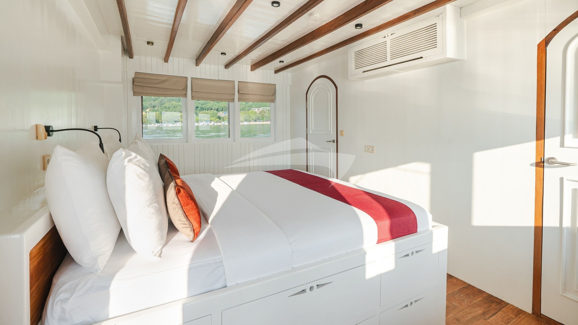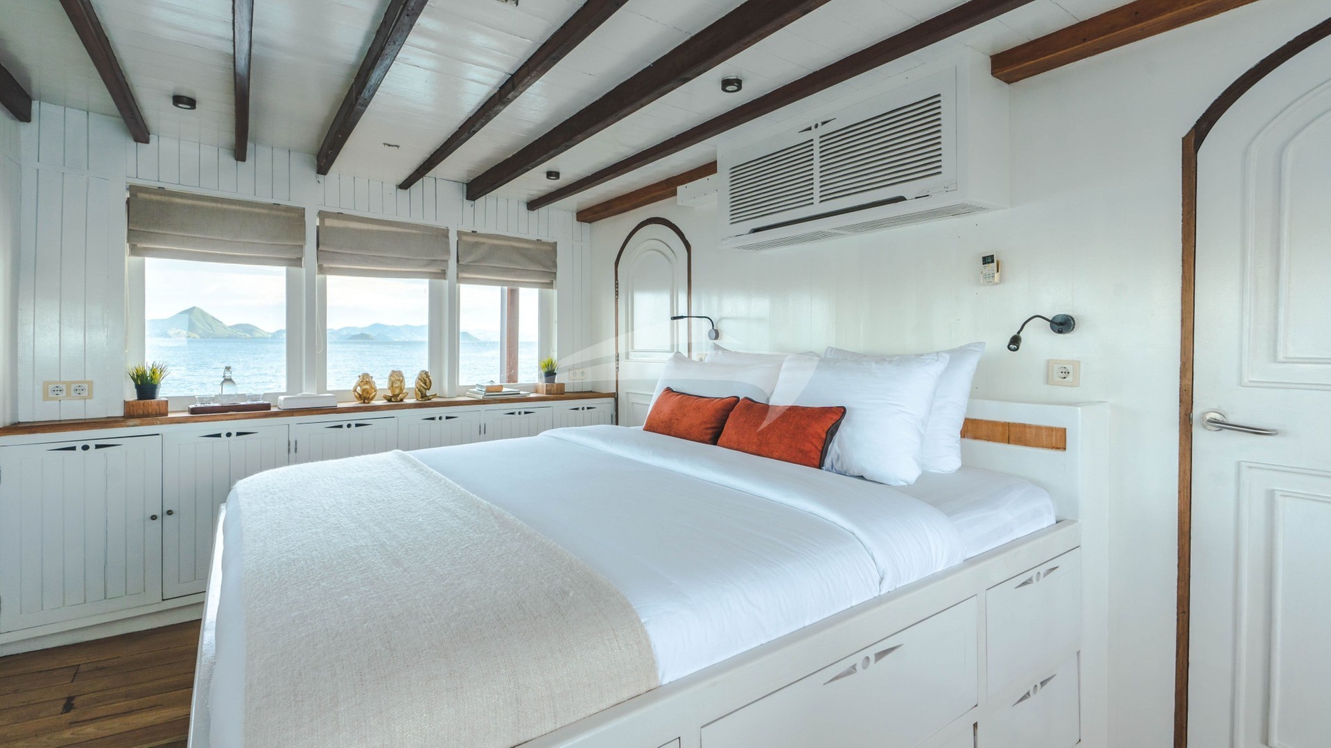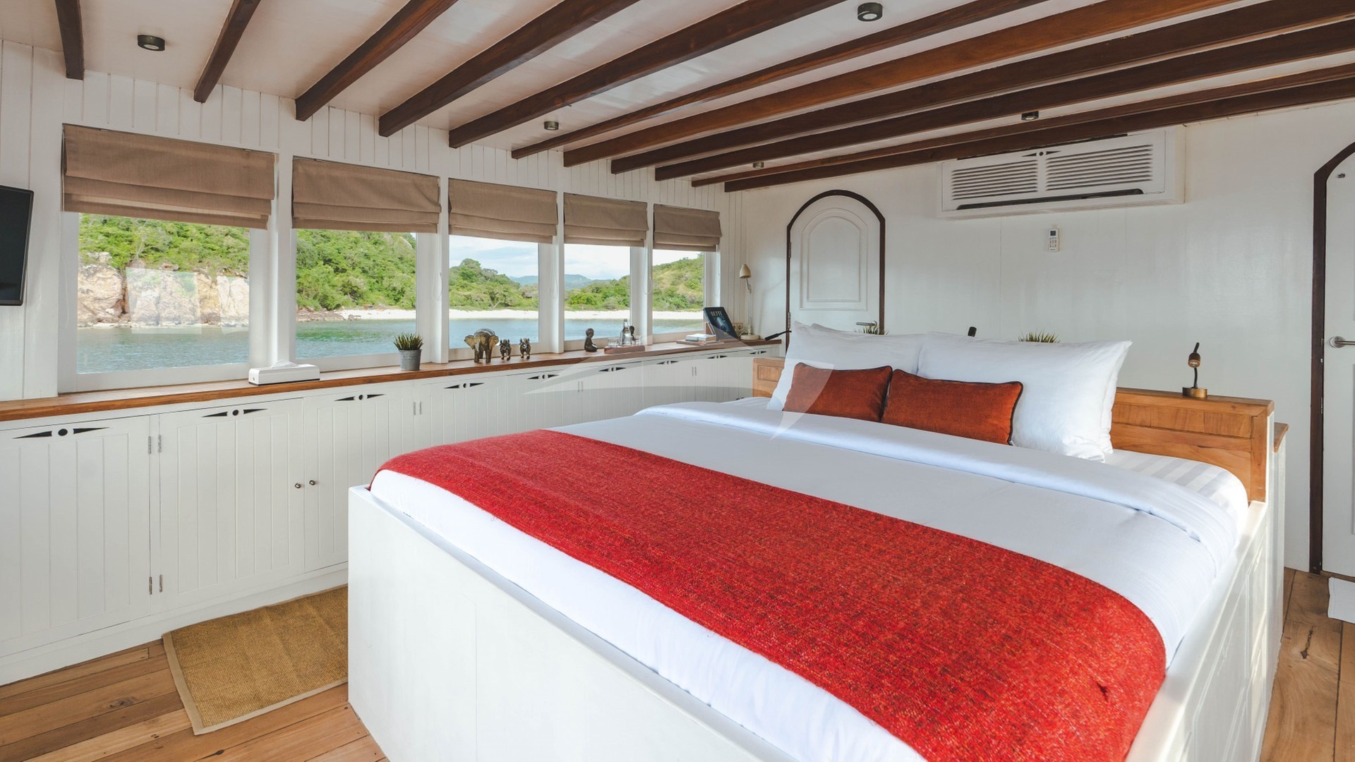 Mischief is designed to comfortably host up to 6 guests in 3 ensuite cabins. The accommodations include a Master cabin with a double bed, a VIP cabin with a double bed, and a Guest cabin that can be arranged with twin beds or a double bed, each with its own private ensuite bathroom.