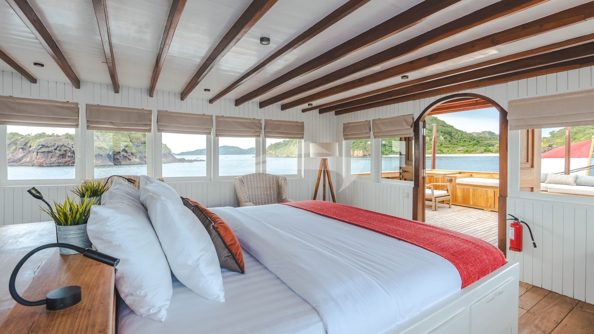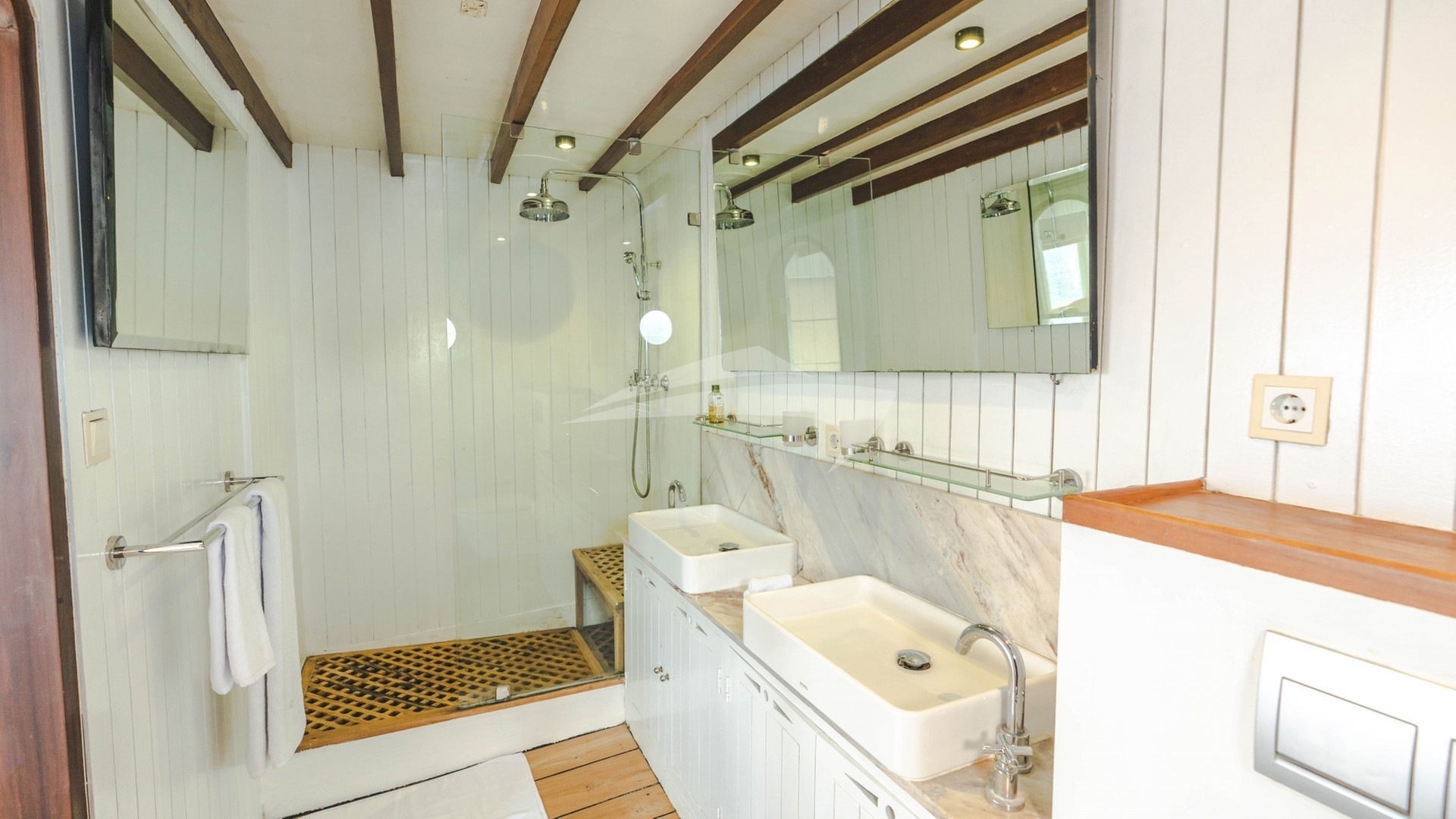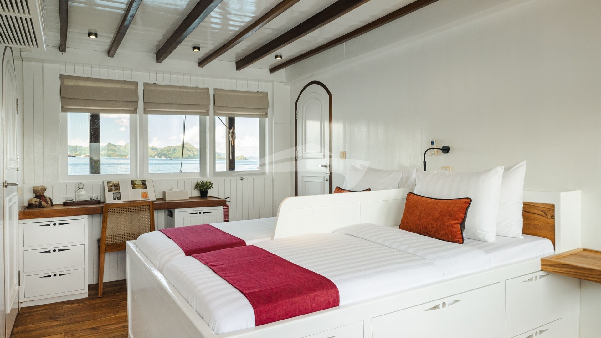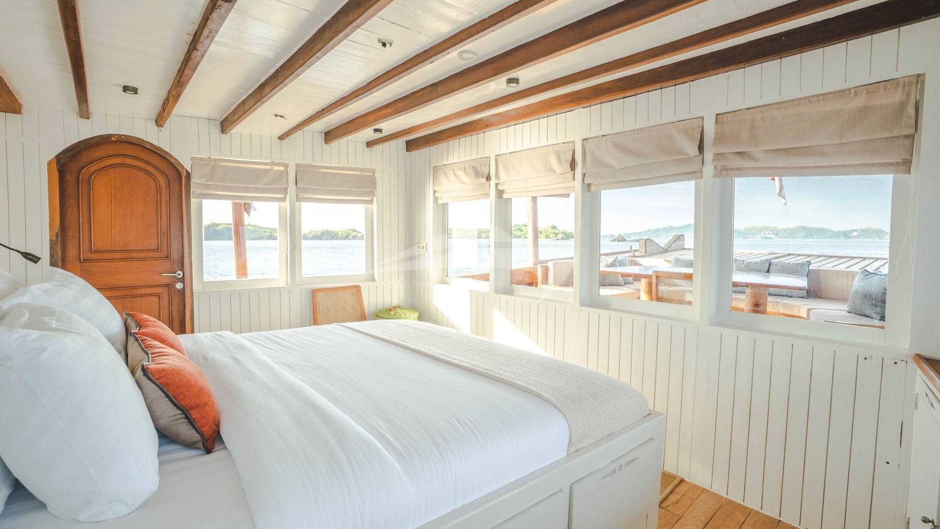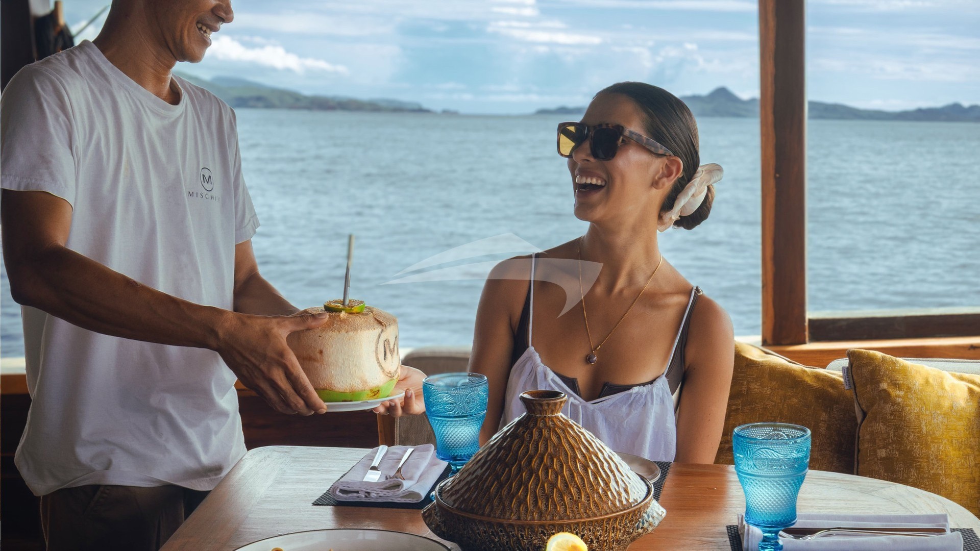 Mischief is designed to comfortably host up to 6 guests in 3 ensuite cabins. The accommodations include a Master cabin with a double bed, a VIP cabin with a double bed, and a Guest cabin that can be arranged with twin beds or a double bed, each with its own private ensuite bathroom.
